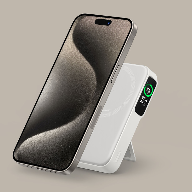 Via a small display on the side of the MagGo Power Bank 10K, you can see how long it will last based on the current charging rate and a percentage showing the overall charge level.
