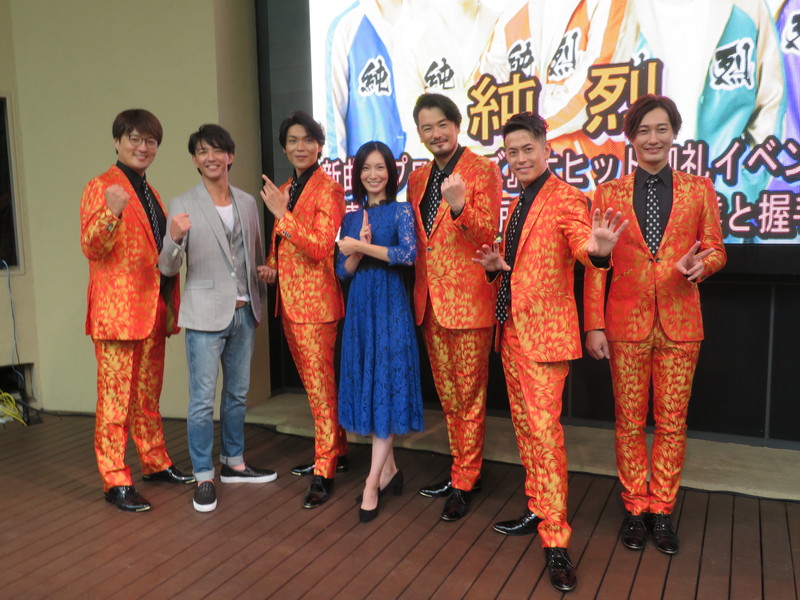 Junretsu is a five-man group singing kayokyoku pop songs, with four of the members having appeared in tokusatsu sci-fi superhero dramas. On Oct. 5, the vocal group held an event in Korakuen, Tokyo, to celebrate the fact that more than 100,000 CDs of their latest single, "Propose," had been shipped.