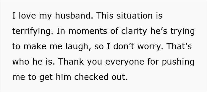 Commenters were glad both of them were safe, but urged the woman to convince her husband to get checked out by a medical professional