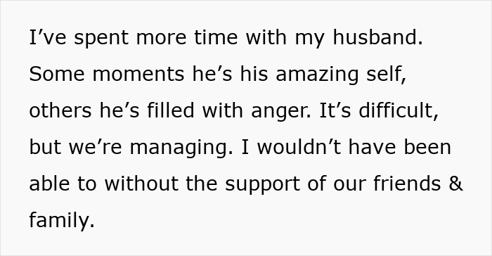 Six weeks after her original post, the wife revealed that her husband’s condition was critical