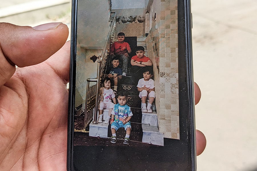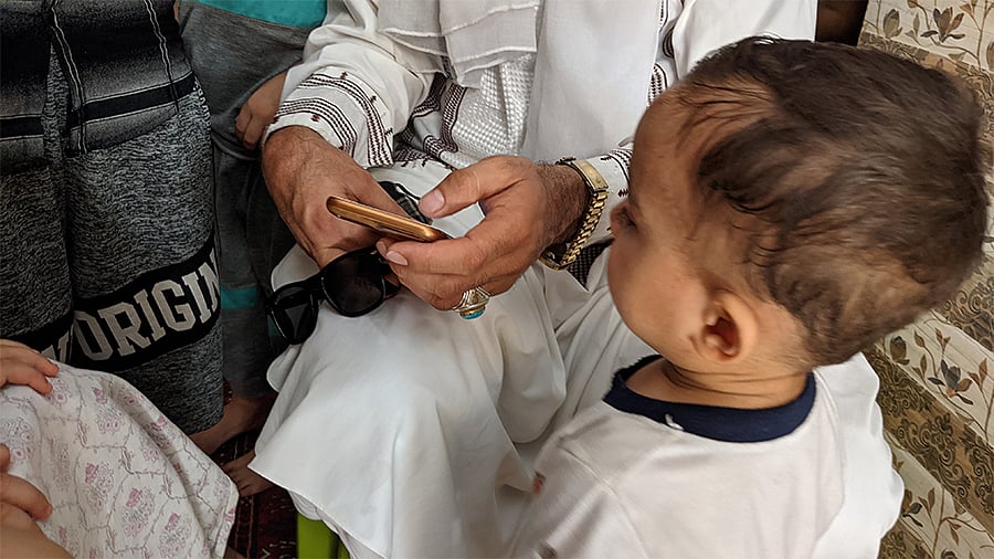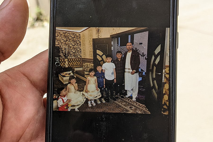 There’s silence in the room. Zabiullah takes out his phone. His children crowd around him. They peer into the phone screen.