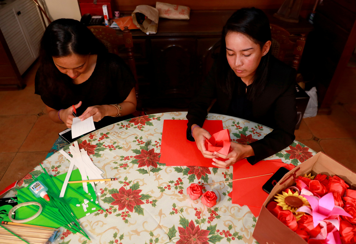 A Filipino entrepreneur makes an origami flower to be sold ahead of Valentines Day, in Quezon City, Philippines, February 13, 2019. REUTERS/Eloisa LopezFilipino entrepreneurs Ann Rodrigues and Alex Castro make origami flowers to be sold ahead of Valentines Day, in Quezon City, Philippines, February 13, 2019. REUTERS/Eloisa LopezFilipino lawyer and entrepreneur Alex Castro holds bouquets of origami flowers to delivered to clients in Quezon City, Philippines, February 13, 2019. REUTERS/Eloisa LopezFilipino lawyer and entrepreneur Alex Castro makes origami flowers to be sold ahead of Valentines Day, in Quezon City, Philippines, February 12, 2019. Picture taken February 12, 2019. REUTERS/Eloisa LopezFilipino entrepreneurs Ann Rodrigues and Alex Castro make origami flowers to be sold ahead of Valentines Day, in Quezon City, Philippines, February 13, 2019. REUTERS/Eloisa Lopez