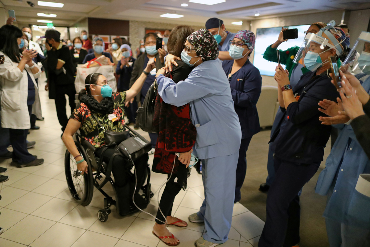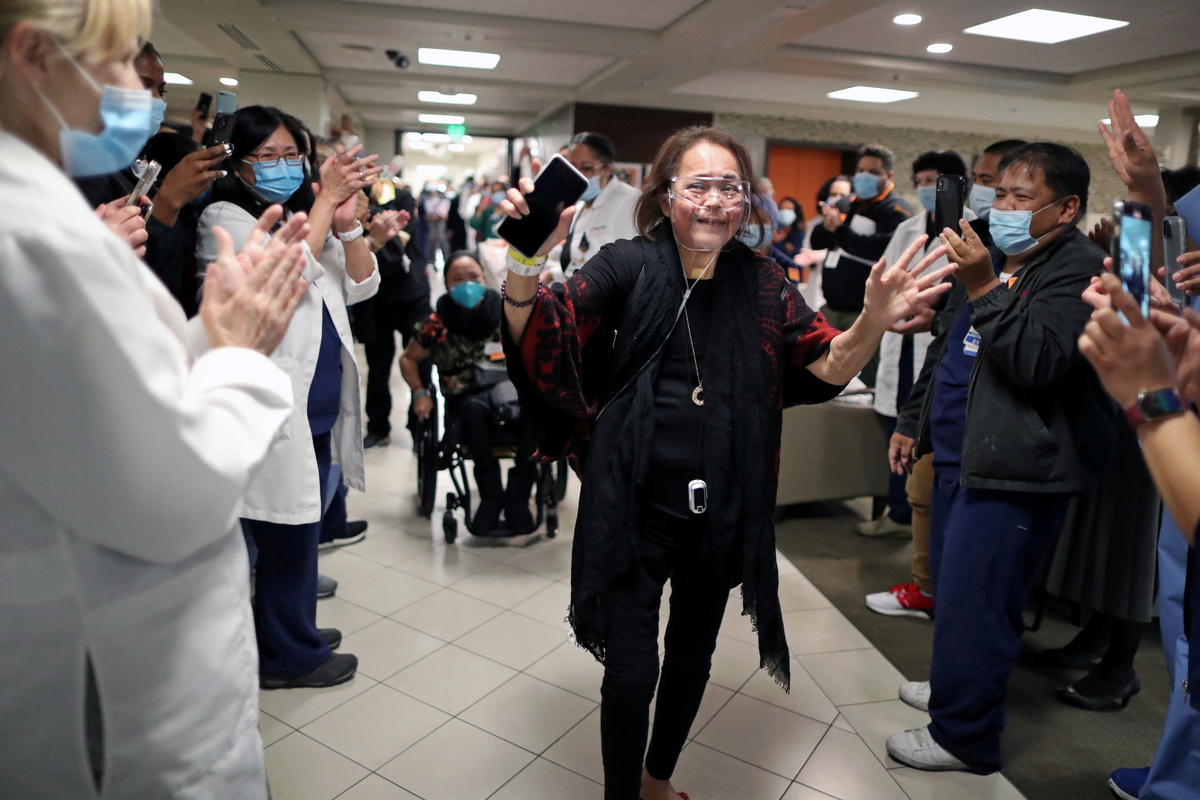 The outpouring of affection she received from colleagues - including many of the physicians, fellow nurses and therapists who took part in her care - also reflected a rare moment of communal triumph for the pandemic-weary hospital staff.