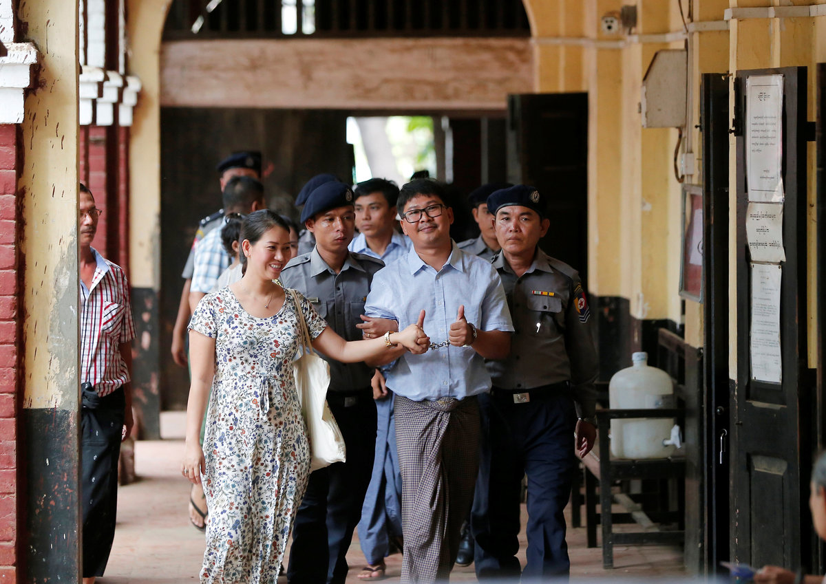 A court in Yangon has been holding preliminary hearings since January to decide whether Reuters reporters Wa Lone, 32, and Kyaw Soe Oo, 28, will be charged under the colonial-era Official Secrets Act, which carries a maximum penalty of 14 years in prison.