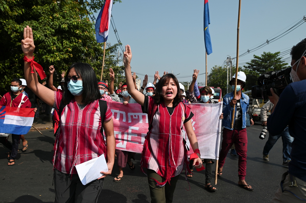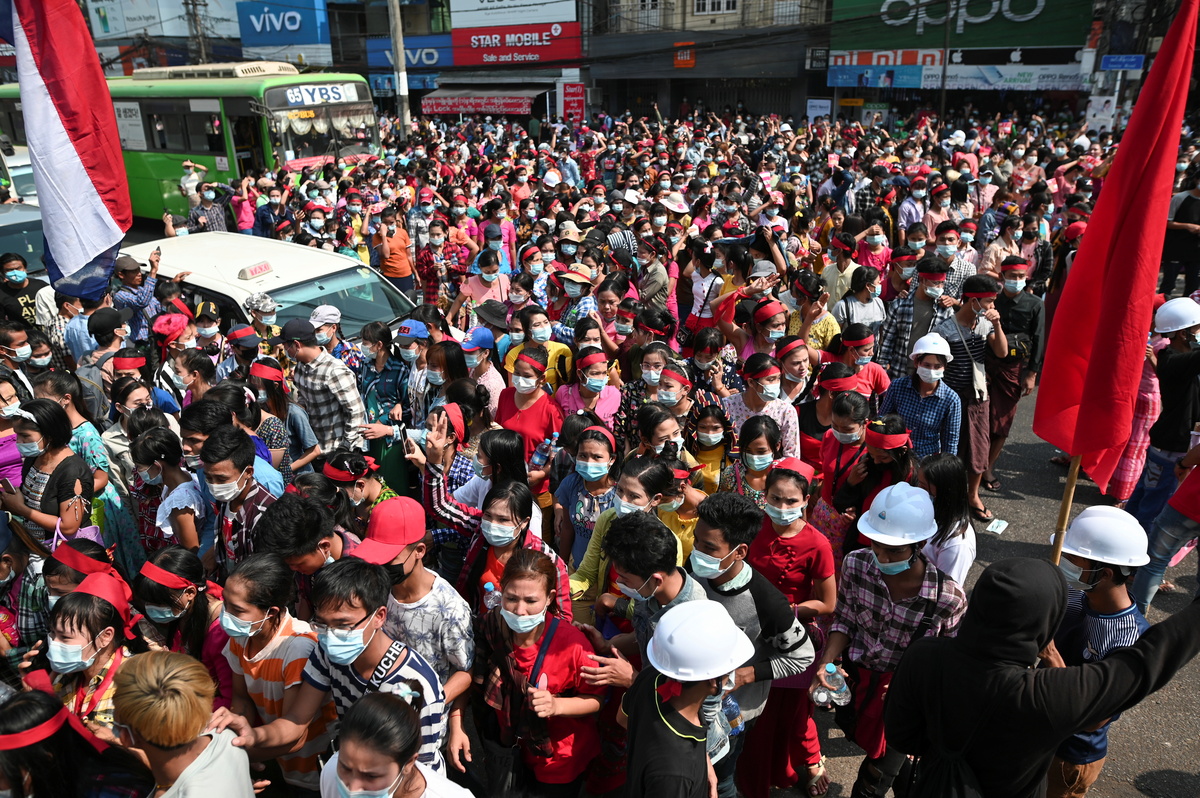 Thousands more took to the streets in Myanmar's second city Mandalay and its military-built capital Naypyidaw, home to the nation's government servants, where demonstrators chanted anti-coup slogans and called for Suu Kyi's release.