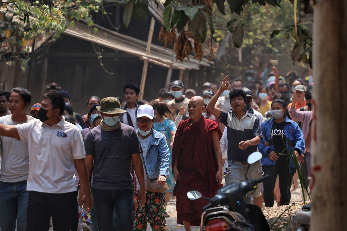 Parts of Yangon are under martial law and thousands of residents have fled the industrial suburb of Hlaingthaya, where security forces killed 40 people on Sunday and Chinese-financed factories were set ablaze.
