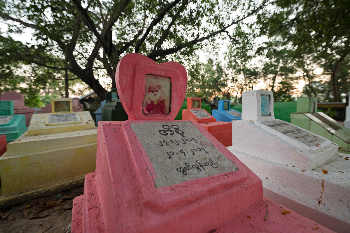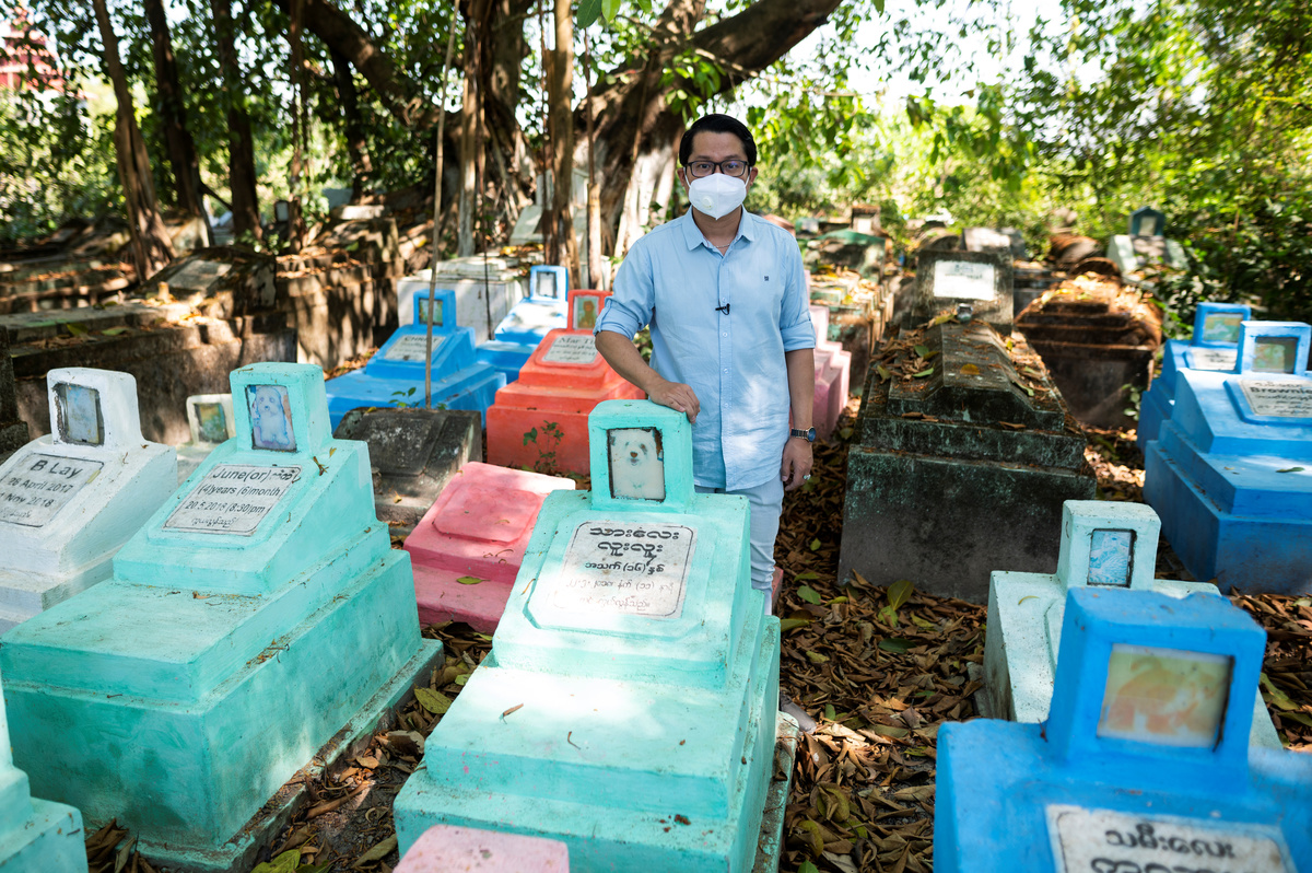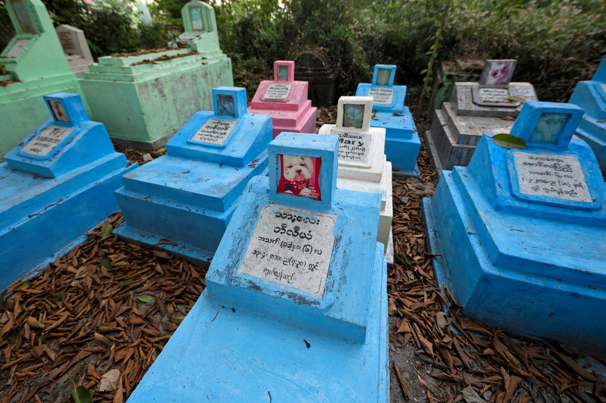 In a shady corner of a cemetery in Myanmar’s commercial capital of Yangon, pastel-colored headstones mark the final resting places of dozens of beloved pets: "Treasure", "Blacky", "Princess", "Bark A Lotzzi".