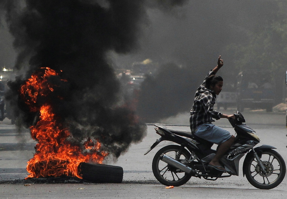 Protest leader Khin Sadar called in a Facebook post in anticipation of the internet blackout for people to join as many "guerrilla protests" as possible, referring quick demonstrations in unusual paces that break up when security forces appear.