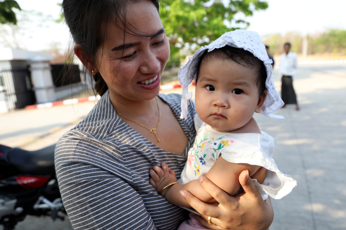 Both remain separated from their young daughters. The wife of 32-year-old Wa Lone gave birth to their first child last year while Wa Lone was behind bars. Kyaw Soe Oo celebrated his 29th birthday in Yangon's Insein jail this month.