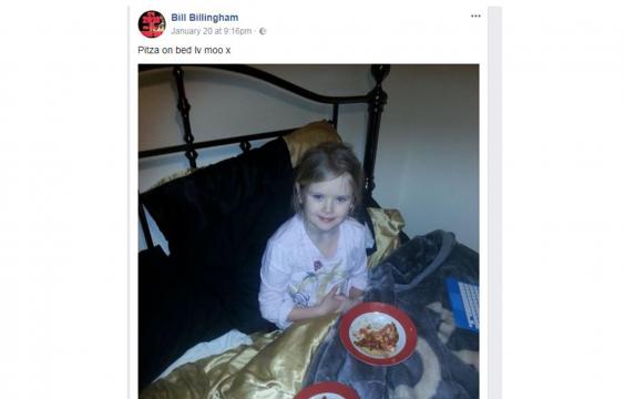 In the picture – which was “liked” by her mother and eight other family members and friends – the girl is tucked up in bed and smiling towards the camera with two plates of pizza on her lap.