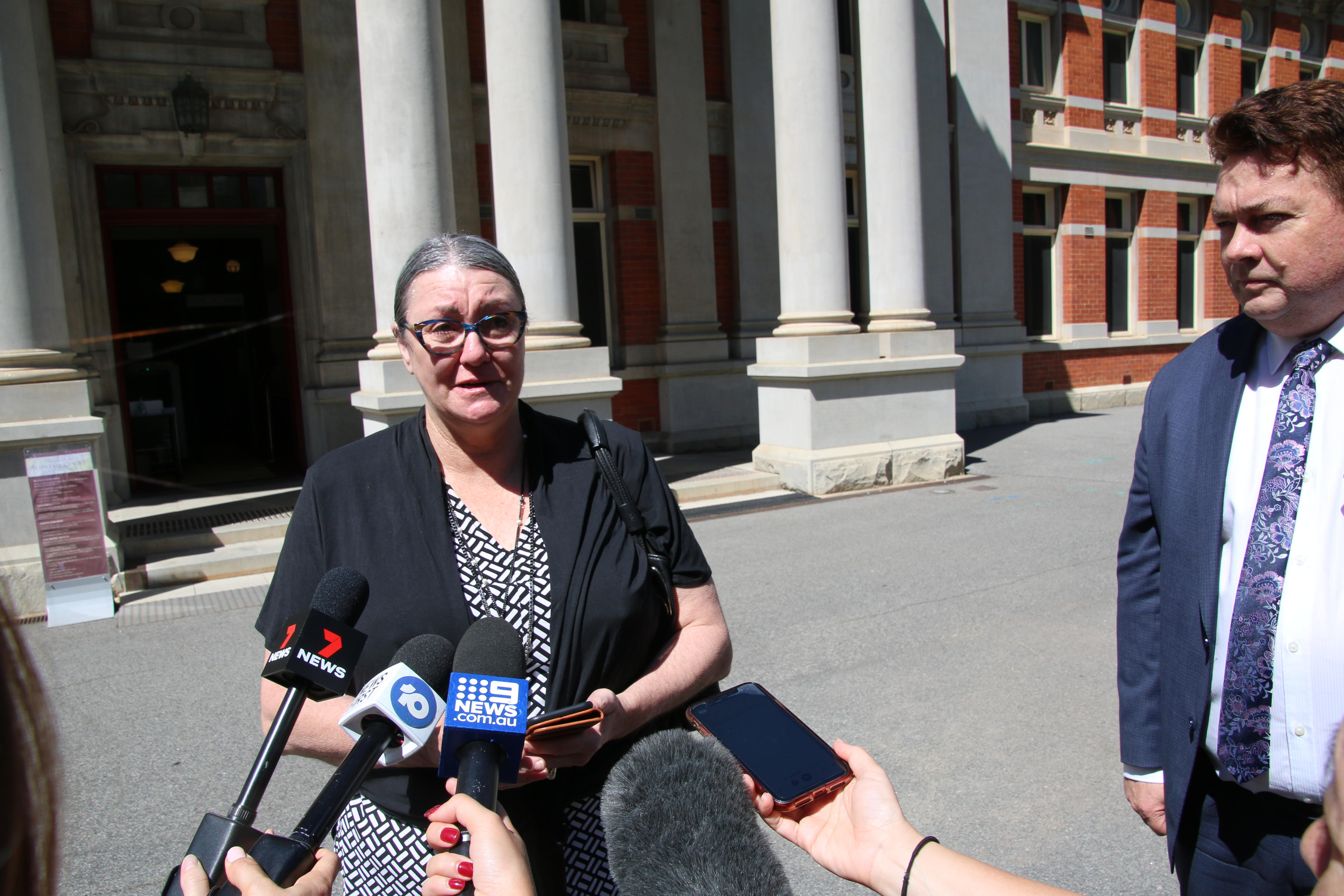 Champion swimmer Shelley Taylor-Smith, Myles's sister, made a statement outside court.