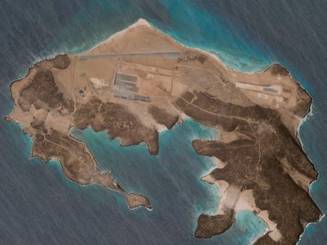 Satellite images from Planet Labs Inc showed heavy construction vehicles building a 1.85km (6,070-foot) runway on the island on 11 April. By 18 May, the work appeared complete, with three hangars constructed on a tarmac just south of the runway.