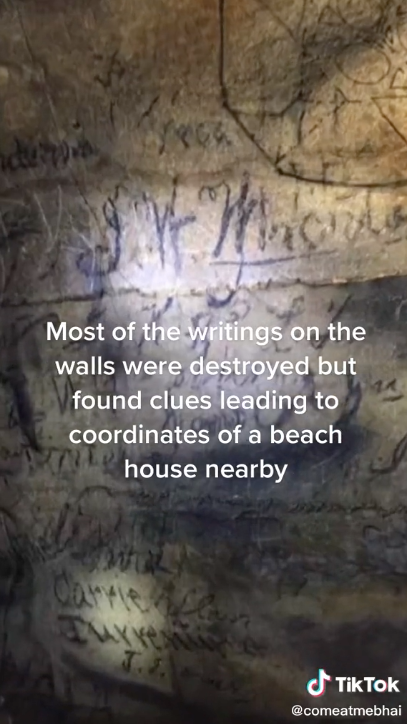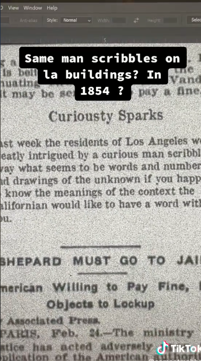 The third and fourth videos on the account show whoever is filming the clips research a story published in the LA Times in August 1854 about another man drawing obscure illustrations on a building. The video then shows the person travelling to some unspecified ‘ruins’.