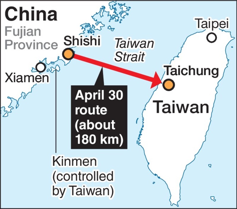 "I crossed the strait from Shishi, Fujian Province, on a rubber boat I bought online," said the man, whose face was sunburned.