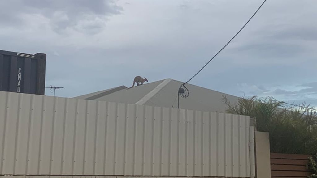 Local kids spotted the kangaroo atop a home on Duchess Road and called in emergency services, who had to be convinced it was a genuine call.