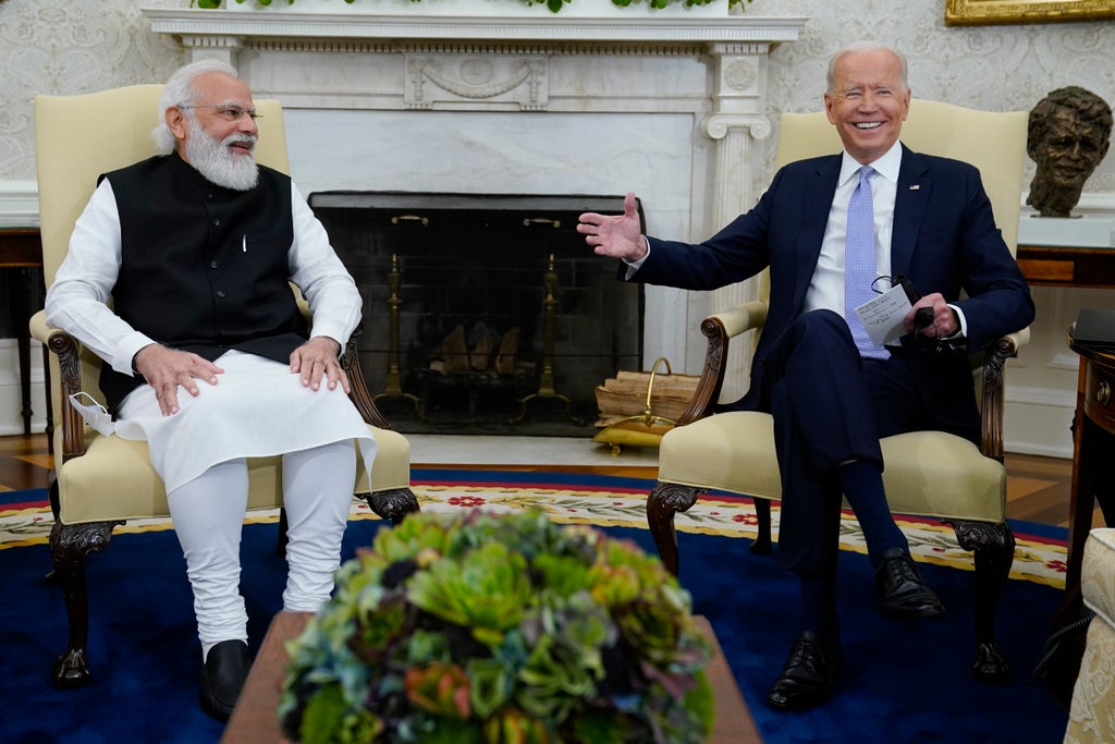 President Joe Biden sat down with Indian Prime Minister Narendra Modi on Friday for important talks about the Indo-Pacific region. But first, the leaders caught up on the president's own family ties to the subcontinent.