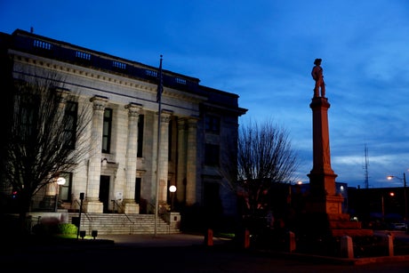 The Confederate monument was erected in 1914 on courthouse grounds across from the site where Outlaw was hanged, the lawsuit says, adding that the county accepted the monument as a gift from the United Daughters of the Confederacy. The lawsuit cites a newspaper account of the dedication ceremony, in which local Ku Klux Klan leader Jacob A. Long said the purpose of the monument was “to recall the achievements of the great and good of our own race and blood ...”