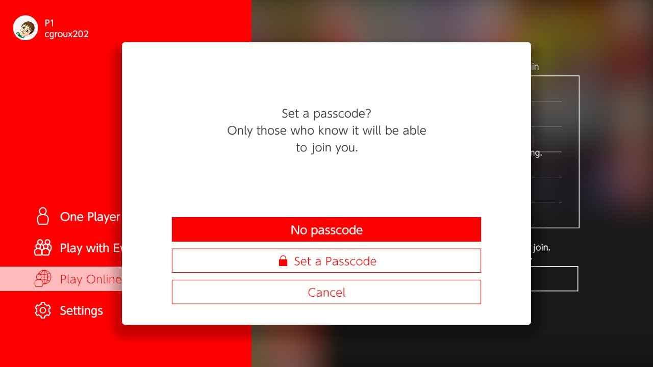 Once you've set up a passcode (or not), it will create an online session. From here, you can invite friends by taking a look at your friends list. You can send an invite to any available friends, and they'll be able to join your game as long as they're a Nintendo Switch Online + Expansion Pack subscriber.