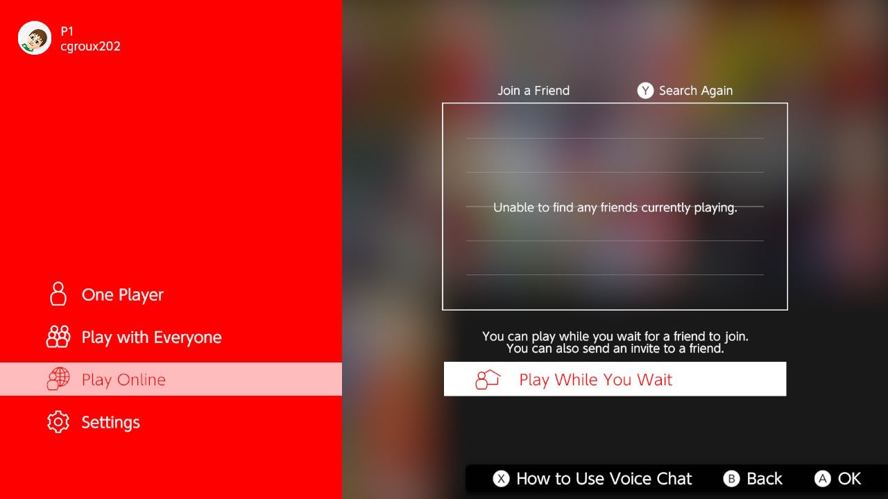 We don't have any friends actively playing N64 games online right now, but if we did, their names would show up below. To join the lobby, press A on the friend's name, and it'll drop you into whatever game that friend happens to be playing. From there, it's up to the host to back out to the main menu and fire up a multiplayer match once the whole group has joined.