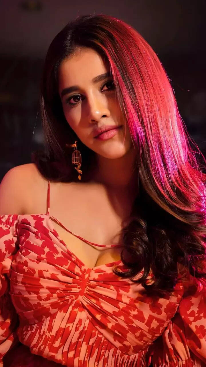 Enchanting gazers with beguiling beauty, Nabha looks picture perfect in a casual pink gown.