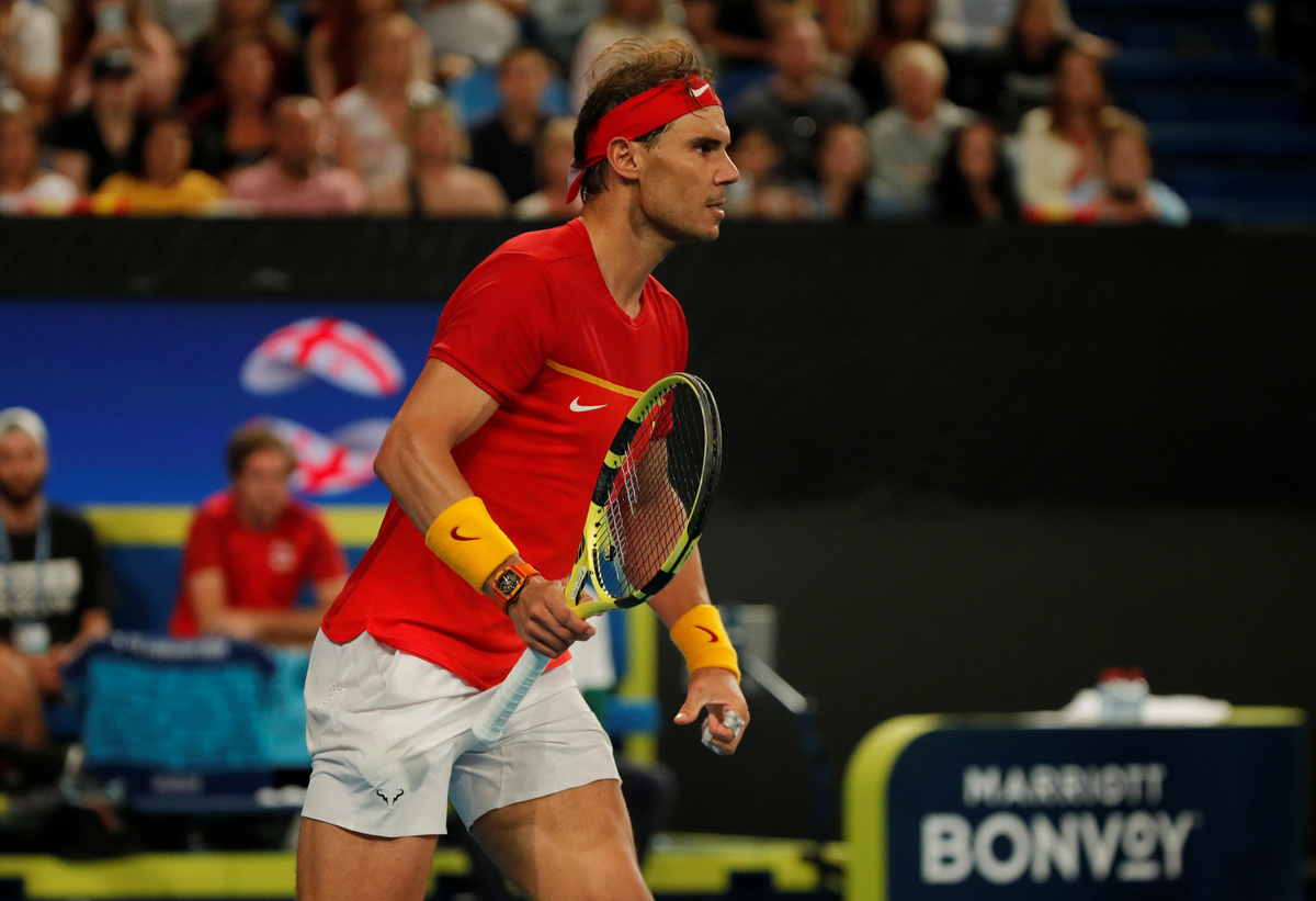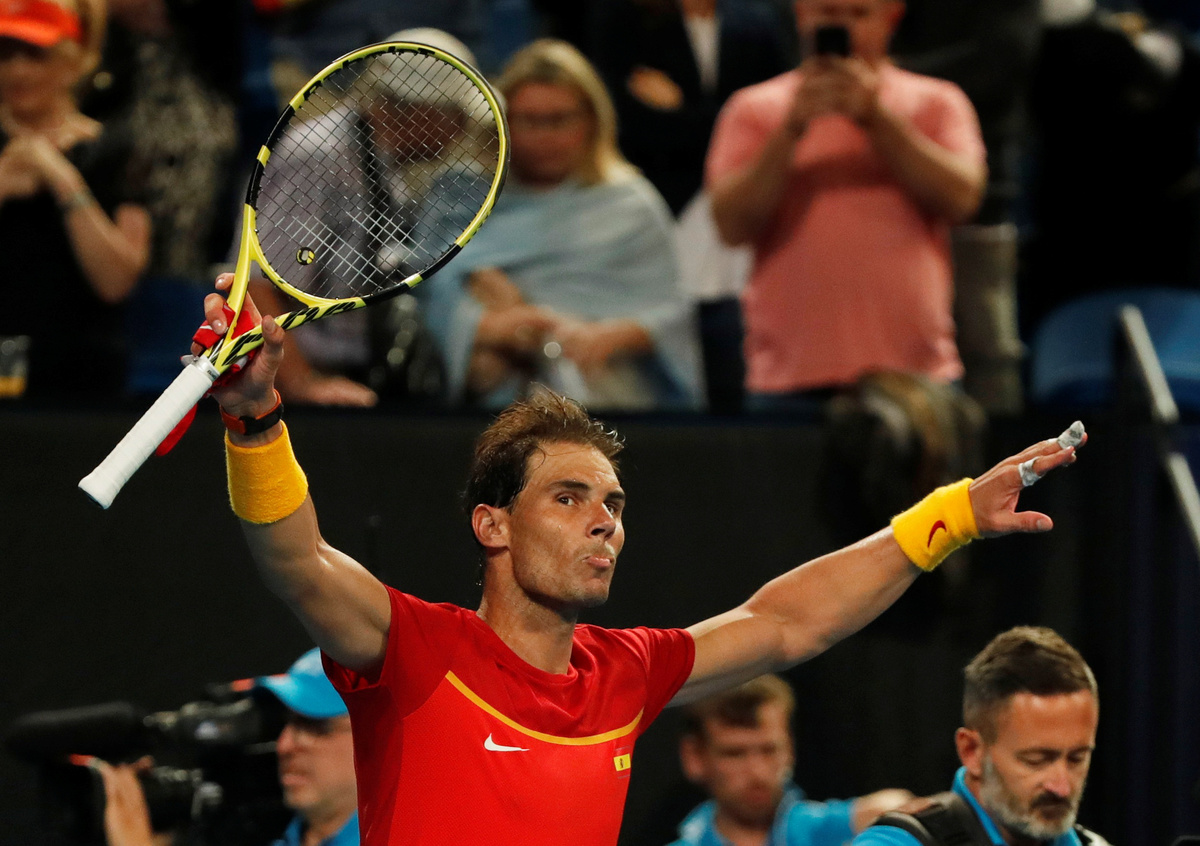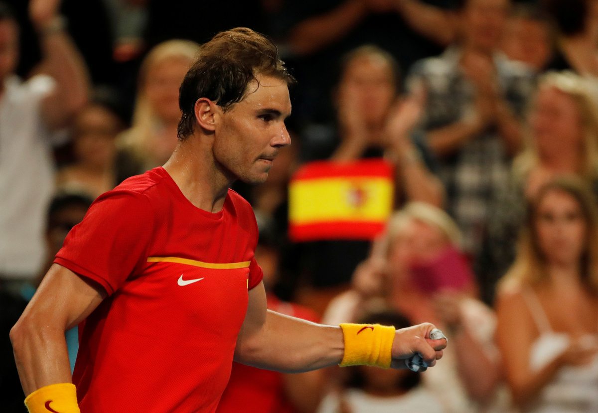 He broke his opponent twice to jump to a 5-2 lead in the second but faced two consecutive breaks on his own serve that levelled the set at 5-5. Nadal then broke again and held on to seal the tie for his team with a 6-3 7-5 victory in Perth.
