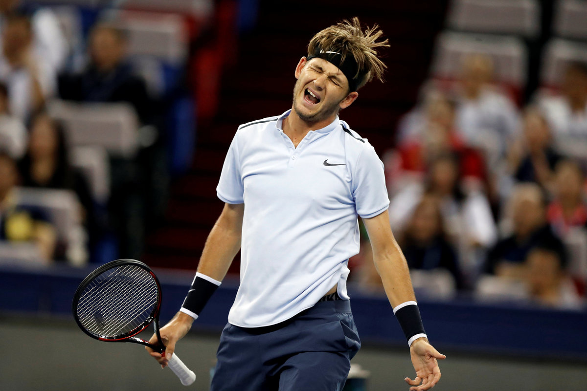 Eighth seed David Goffin's hopes of qualifying for the ATP World Tour Finals suffered a blow when he lost 7-6(4) 6-3 to Gilles Simon, while sixth seed Grigor Dimitrov had to save match points on the way to beating Ryan Harrison 3-6 6-3 7-6(6).