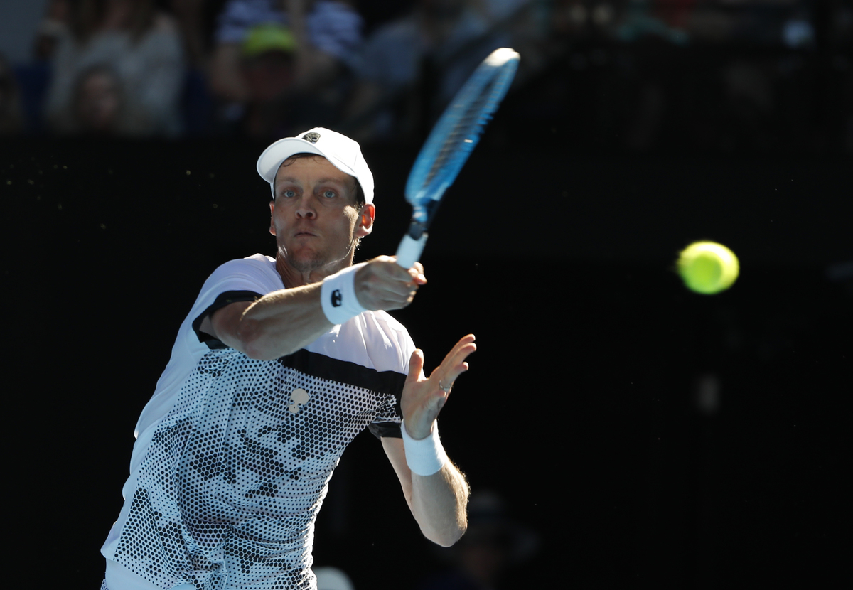He saved two break points at 5-5 and prised a set point in the following game with a blazing forehand down the line.