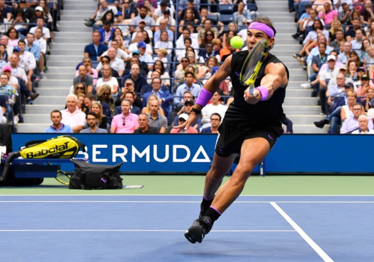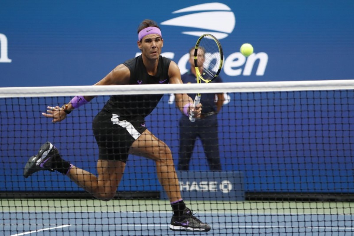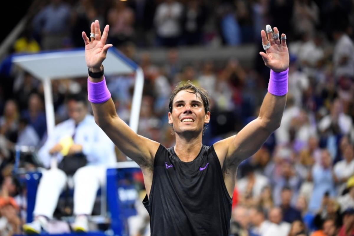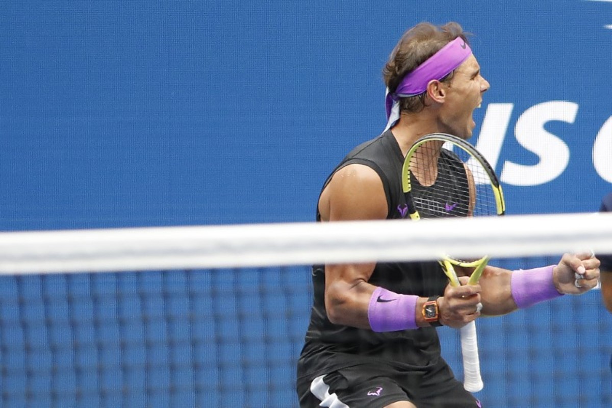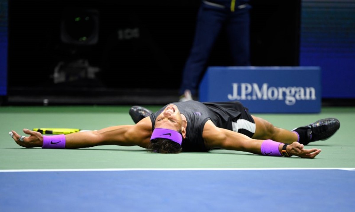 Sep 8, 2019; Flushing, NY, USA; Daniil Medvedev of Russia cannot get to a shot by Rafael Nadal of Spain in the men's singles final on day fourteen of the 2019 US Open tennis tournament at USTA Billie Jean King National Tennis Center. Mandatory Credit: Danielle Parhizkaran-USA TODAY SportsSept 8, 2019; Flushing, NY, USA; Rafael Nadal of Spain hits to Daniil Medvedev of Russia in the men’s final match on day fourteen of the 2019 U.S. Open tennis tournament at USTA Billie Jean King National Tennis Center. Mandatory Credit: Robert Deutsch-USA TODAY SportsSep 8, 2019; Flushing, NY, USA; Daniil Medvedev of Russia hits a forehand against Rafael Nadal of Spain (not pictured) in the menÕs singles final on day fourteen of the 2019 US Open tennis tournament at USTA Billie Jean King National Tennis Center. Mandatory Credit: Geoff Burke-USA TODAY SportsSep 8, 2019; Flushing, NY, USA; Rafael Nadal of Spain reacts after winning the first set against Daniil Medvedev of Russia (R) in the menÕs singles final on day fourteen of the 2019 US Open tennis tournament at USTA Billie Jean King National Tennis Center. Mandatory Credit: Geoff Burke-USA TODAY SportsSep 8, 2019; Flushing, NY, USA; Rafael Nadal of Spain hits a volley against Daniil Medvedev of Russia (R) in the menÕs singles final on day fourteen of the 2019 US Open tennis tournament at USTA Billie Jean King National Tennis Center. Mandatory Credit: Geoff Burke-USA TODAY SportsSep 8, 2019; Flushing, NY, USA; Daniil Medvedev of Russia returns a shot against Rafael Nadal of Spain in the men's singles final on day fourteen of the 2019 US Open tennis tournament at USTA Billie Jean King National Tennis Center. Mandatory Credit: Danielle Parhizkaran-USA TODAY SportsSept 8, 2019; Flushing, NY, USA; Rafael Nadal of Spain hits to Daniil Medvedev of Russia in the men’s final match on day fourteen of the 2019 U.S. Open tennis tournament at USTA Billie Jean King National Tennis Center. Mandatory Credit: Robert Deutsch-USA TODAY SportsSept 8, 2019; Flushing, NY, USA; Daniil Medvedev of Russia hits to Rafael Nadal of Spain in the men’s final match on day fourteen of the 2019 U.S. Open tennis tournament at USTA Billie Jean King National Tennis Center. Mandatory Credit: Robert Deutsch-USA TODAY SportsSept 8, 2019; Flushing, NY, USA; Rafael Nadal of Spain hits to Daniil Medvedev of Russia in the men’s final match on day fourteen of the 2019 U.S. Open tennis tournament at USTA Billie Jean King National Tennis Center. Mandatory Credit: Robert Deutsch-USA TODAY SportsSept 8, 2019; Flushing, NY, USA; Daniil Medvedev of Russia hits to Rafael Nadal of Spain in the men’s final match on day fourteen of the 2019 U.S. Open tennis tournament at USTA Billie Jean King National Tennis Center. Mandatory Credit: Robert Deutsch-USA TODAY SportsSep 8, 2019; Flushing, NY, USA; Daniil Medvedev of Russia serves against Rafael Nadal of Spain (not pictured) in the reacts after winning the third set singles final on day fourteen of the 2019 US Open tennis tournament at USTA Billie Jean King National Tennis Center. Mandatory Credit: Geoff Burke-USA TODAY SportsSep 8, 2019; Flushing, NY, USA; Daniil Medvedev of Russia serves against Rafael Nadal of Spain (not pictured) in the menÕs singles final on day fourteen of the 2019 US Open tennis tournament at USTA Billie Jean King National Tennis Center. Mandatory Credit: Geoff Burke-USA TODAY SportsSep 8, 2019; Flushing, NY, USA; Rafael Nadal of Spain serves against Daniil Medvedev of Russia in the men's singles final on day fourteen of the 2019 US Open tennis tournament at USTA Billie Jean King National Tennis Center. Mandatory Credit: Danielle Parhizkaran-USA TODAY SportsSep 8, 2019; Flushing, NY, USA; Daniil Medvedev of Russia returns a shot against Rafael Nadal of Spain in the men's singles final on day fourteen of the 2019 US Open tennis tournament at USTA Billie Jean King National Tennis Center. Mandatory Credit: Danielle Parhizkaran-USA TODAY SportsSep 8, 2019; Flushing, NY, USA; Rafael Nadal of Spain returns a shot against Daniil Medvedev of Russia in the men's singles final on day fourteen of the 2019 US Open tennis tournament at USTA Billie Jean King National Tennis Center. Mandatory Credit: Danielle Parhizkaran-USA TODAY SportsSept 8, 2019; Flushing, NY, USA; Rafael Nadal of Spain celebrates match point against Daniil Medvedev of Russia in the men’s final match on day fourteen of the 2019 U.S. Open tennis tournament at USTA Billie Jean King National Tennis Center. Mandatory Credit: Robert Deutsch-USA TODAY SportsSept 8, 2019; Flushing, NY, USA; Rafael Nadal of Spain celebrates match point against Daniil Medvedev of Russia in the men’s final match on day fourteen of the 2019 U.S. Open tennis tournament at USTA Billie Jean King National Tennis Center. Mandatory Credit: Robert Deutsch-USA TODAY SportsSept 8, 2019; Flushing, NY, USA; Rafael Nadal of Spain greets Daniil Medvedev of Russia after the men’s singles final match on day fourteen of the 2019 U.S. Open tennis tournament at USTA Billie Jean King National Tennis Center. Mandatory Credit: Robert Deutsch-USA TODAY Sports