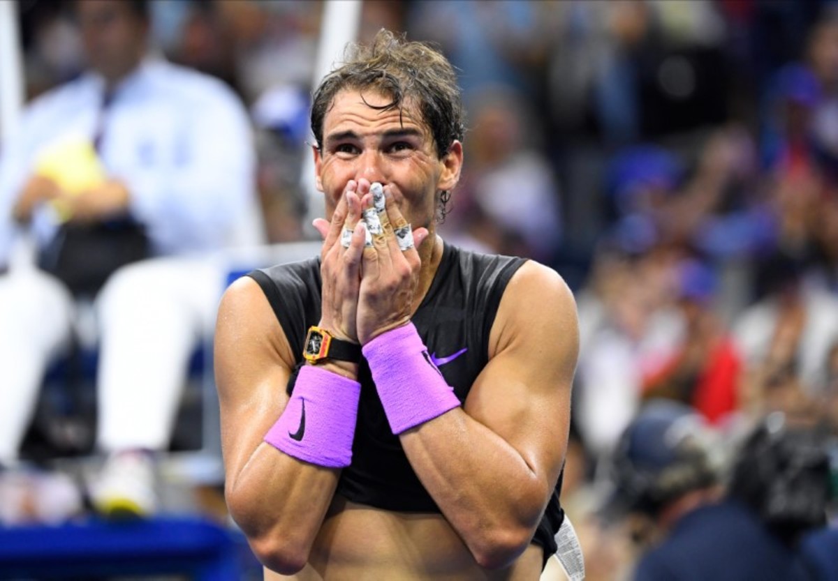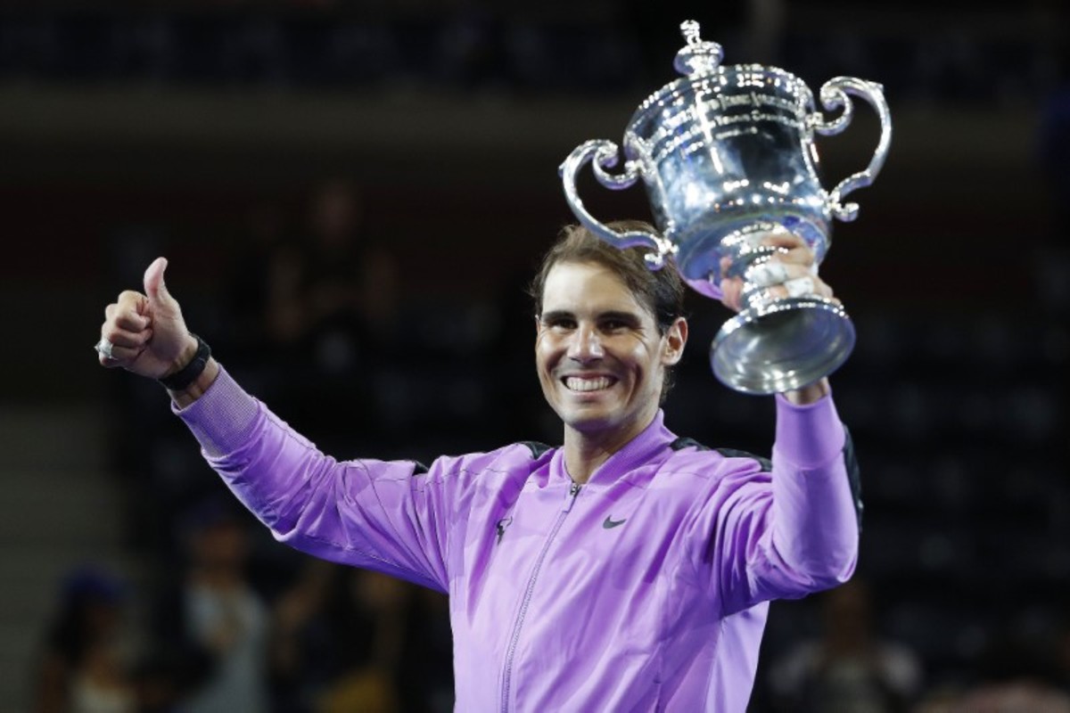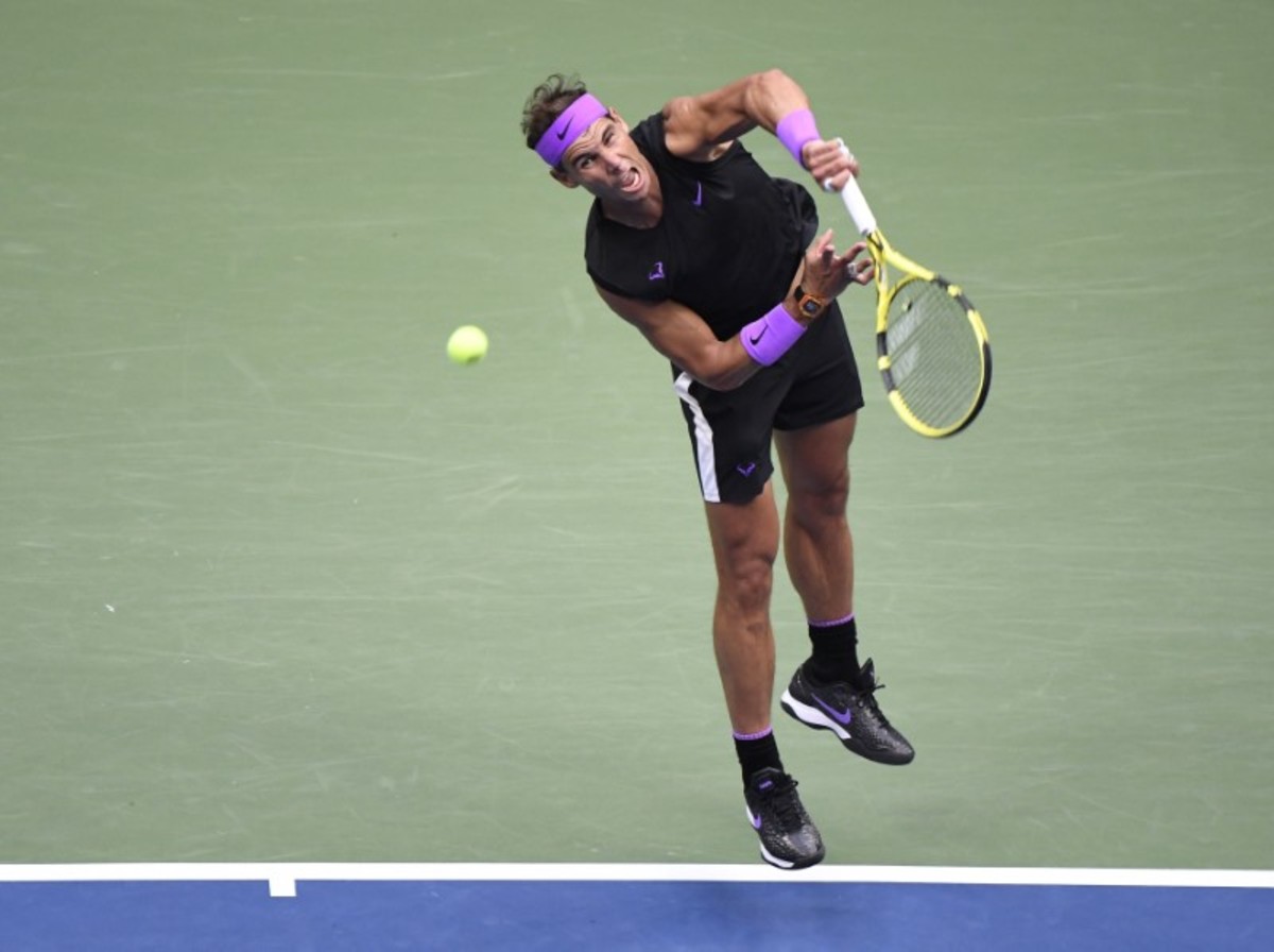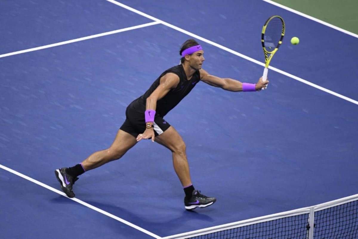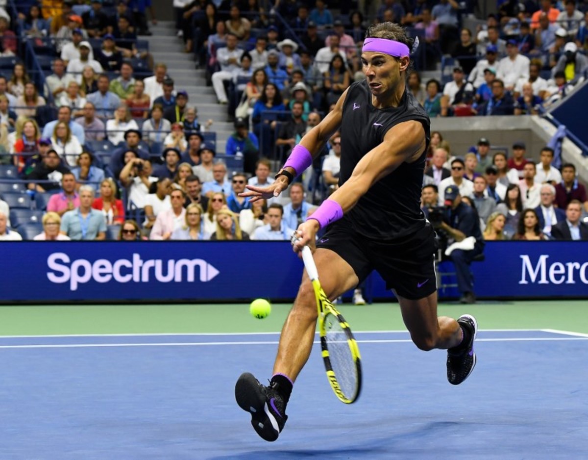 Sep 8, 2019; Flushing, NY, USA; Daniil Medvedev of Russia cannot get to a shot by Rafael Nadal of Spain in the men's singles final on day fourteen of the 2019 US Open tennis tournament at USTA Billie Jean King National Tennis Center. Mandatory Credit: Danielle Parhizkaran-USA TODAY SportsSept 8, 2019; Flushing, NY, USA; Rafael Nadal of Spain hits to Daniil Medvedev of Russia in the men’s final match on day fourteen of the 2019 U.S. Open tennis tournament at USTA Billie Jean King National Tennis Center. Mandatory Credit: Robert Deutsch-USA TODAY SportsSep 8, 2019; Flushing, NY, USA; Daniil Medvedev of Russia hits a forehand against Rafael Nadal of Spain (not pictured) in the menÕs singles final on day fourteen of the 2019 US Open tennis tournament at USTA Billie Jean King National Tennis Center. Mandatory Credit: Geoff Burke-USA TODAY SportsSep 8, 2019; Flushing, NY, USA; Rafael Nadal of Spain reacts after winning the first set against Daniil Medvedev of Russia (R) in the menÕs singles final on day fourteen of the 2019 US Open tennis tournament at USTA Billie Jean King National Tennis Center. Mandatory Credit: Geoff Burke-USA TODAY SportsSep 8, 2019; Flushing, NY, USA; Rafael Nadal of Spain hits a volley against Daniil Medvedev of Russia (R) in the menÕs singles final on day fourteen of the 2019 US Open tennis tournament at USTA Billie Jean King National Tennis Center. Mandatory Credit: Geoff Burke-USA TODAY SportsSep 8, 2019; Flushing, NY, USA; Daniil Medvedev of Russia returns a shot against Rafael Nadal of Spain in the men's singles final on day fourteen of the 2019 US Open tennis tournament at USTA Billie Jean King National Tennis Center. Mandatory Credit: Danielle Parhizkaran-USA TODAY SportsSept 8, 2019; Flushing, NY, USA; Rafael Nadal of Spain hits to Daniil Medvedev of Russia in the men’s final match on day fourteen of the 2019 U.S. Open tennis tournament at USTA Billie Jean King National Tennis Center. Mandatory Credit: Robert Deutsch-USA TODAY SportsSept 8, 2019; Flushing, NY, USA; Daniil Medvedev of Russia hits to Rafael Nadal of Spain in the men’s final match on day fourteen of the 2019 U.S. Open tennis tournament at USTA Billie Jean King National Tennis Center. Mandatory Credit: Robert Deutsch-USA TODAY SportsSept 8, 2019; Flushing, NY, USA; Rafael Nadal of Spain hits to Daniil Medvedev of Russia in the men’s final match on day fourteen of the 2019 U.S. Open tennis tournament at USTA Billie Jean King National Tennis Center. Mandatory Credit: Robert Deutsch-USA TODAY SportsSept 8, 2019; Flushing, NY, USA; Daniil Medvedev of Russia hits to Rafael Nadal of Spain in the men’s final match on day fourteen of the 2019 U.S. Open tennis tournament at USTA Billie Jean King National Tennis Center. Mandatory Credit: Robert Deutsch-USA TODAY SportsSep 8, 2019; Flushing, NY, USA; Daniil Medvedev of Russia serves against Rafael Nadal of Spain (not pictured) in the reacts after winning the third set singles final on day fourteen of the 2019 US Open tennis tournament at USTA Billie Jean King National Tennis Center. Mandatory Credit: Geoff Burke-USA TODAY SportsSep 8, 2019; Flushing, NY, USA; Daniil Medvedev of Russia serves against Rafael Nadal of Spain (not pictured) in the menÕs singles final on day fourteen of the 2019 US Open tennis tournament at USTA Billie Jean King National Tennis Center. Mandatory Credit: Geoff Burke-USA TODAY SportsSep 8, 2019; Flushing, NY, USA; Rafael Nadal of Spain serves against Daniil Medvedev of Russia in the men's singles final on day fourteen of the 2019 US Open tennis tournament at USTA Billie Jean King National Tennis Center. Mandatory Credit: Danielle Parhizkaran-USA TODAY SportsSep 8, 2019; Flushing, NY, USA; Daniil Medvedev of Russia returns a shot against Rafael Nadal of Spain in the men's singles final on day fourteen of the 2019 US Open tennis tournament at USTA Billie Jean King National Tennis Center. Mandatory Credit: Danielle Parhizkaran-USA TODAY SportsSep 8, 2019; Flushing, NY, USA; Rafael Nadal of Spain returns a shot against Daniil Medvedev of Russia in the men's singles final on day fourteen of the 2019 US Open tennis tournament at USTA Billie Jean King National Tennis Center. Mandatory Credit: Danielle Parhizkaran-USA TODAY SportsSept 8, 2019; Flushing, NY, USA; Rafael Nadal of Spain celebrates match point against Daniil Medvedev of Russia in the men’s final match on day fourteen of the 2019 U.S. Open tennis tournament at USTA Billie Jean King National Tennis Center. Mandatory Credit: Robert Deutsch-USA TODAY SportsSept 8, 2019; Flushing, NY, USA; Rafael Nadal of Spain celebrates match point against Daniil Medvedev of Russia in the men’s final match on day fourteen of the 2019 U.S. Open tennis tournament at USTA Billie Jean King National Tennis Center. Mandatory Credit: Robert Deutsch-USA TODAY SportsSept 8, 2019; Flushing, NY, USA; Rafael Nadal of Spain greets Daniil Medvedev of Russia after the men’s singles final match on day fourteen of the 2019 U.S. Open tennis tournament at USTA Billie Jean King National Tennis Center. Mandatory Credit: Robert Deutsch-USA TODAY Sports