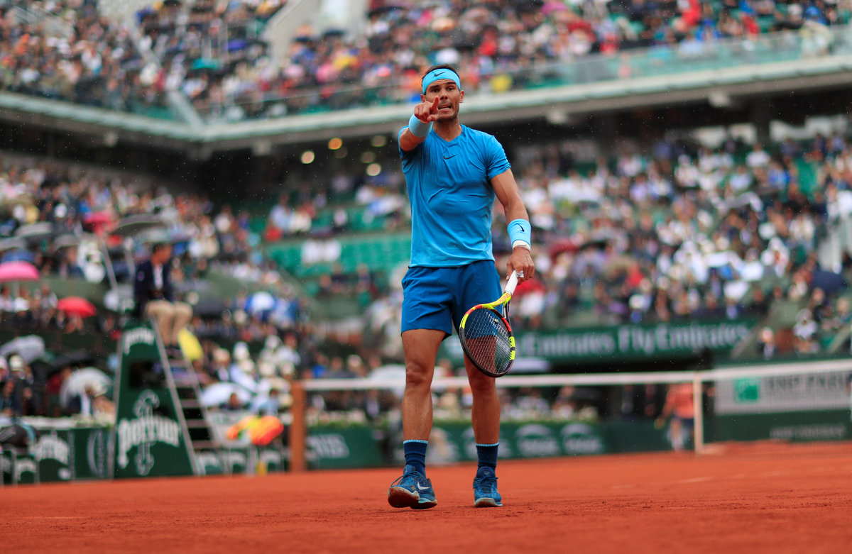 Upon resumption, the Spaniard gradually improved before rain brought an early end to the day with Nadal on the brink of winning the second set.