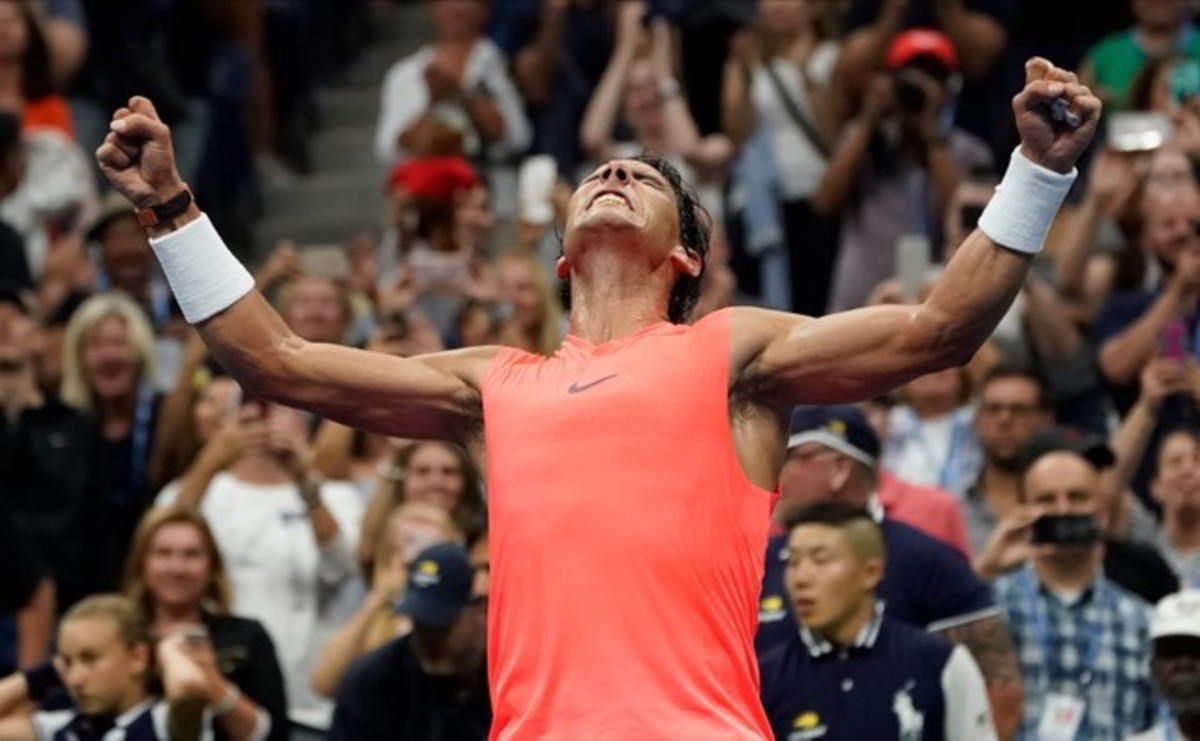 Rain began to fall while Nadal celebrated, forcing a delay as the Arthur Ashe stadium's retractable roof was closed and providing the defending champion with an opportunity to regroup.