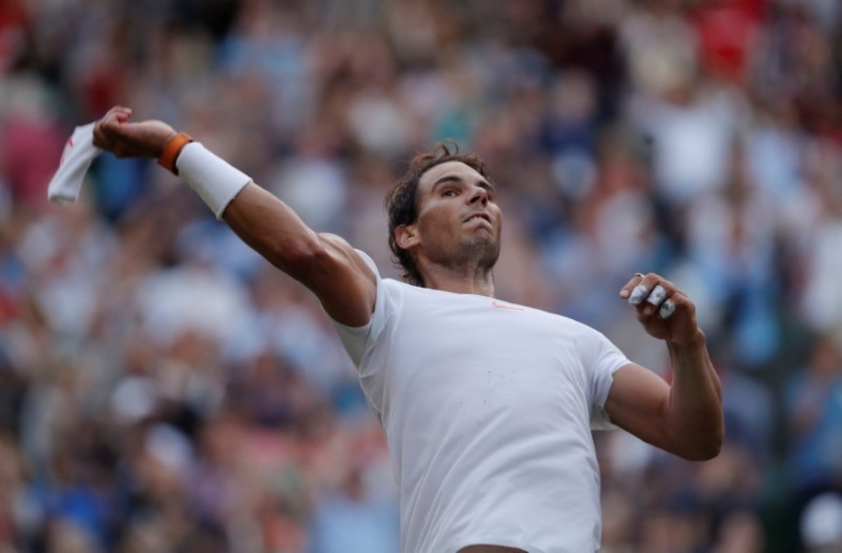 That mishap could not stop Nadal from reaching his sixth Wimbledon semi-final and he celebrated the moment by raising both arms up into the skies after four hours and 48 minutes of thrilling action.