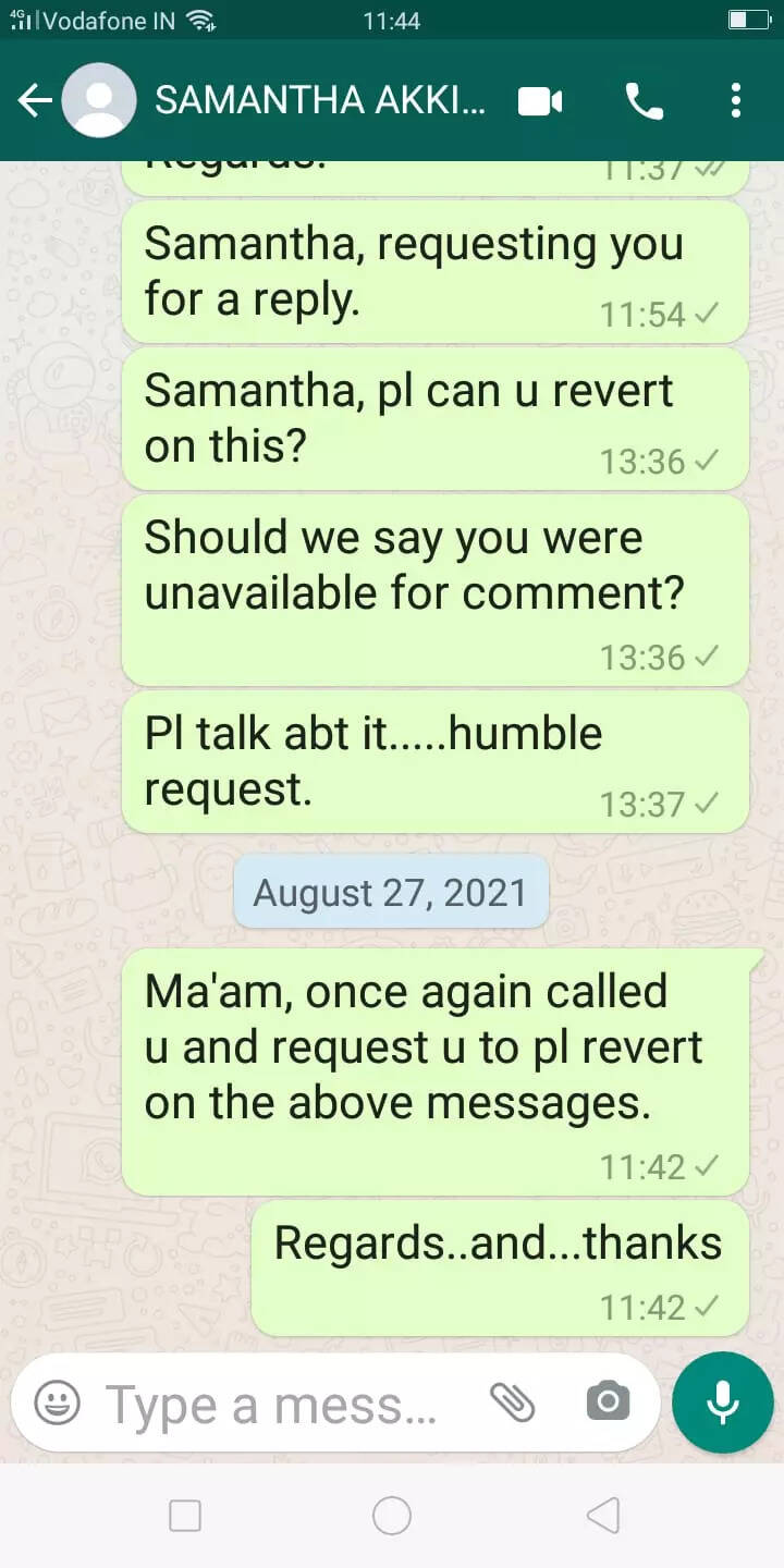 Samantha also said a closing statement which was not audible and when we asked her if she could say that again, she had till then hung up. We hope she said 'it’s not true'.