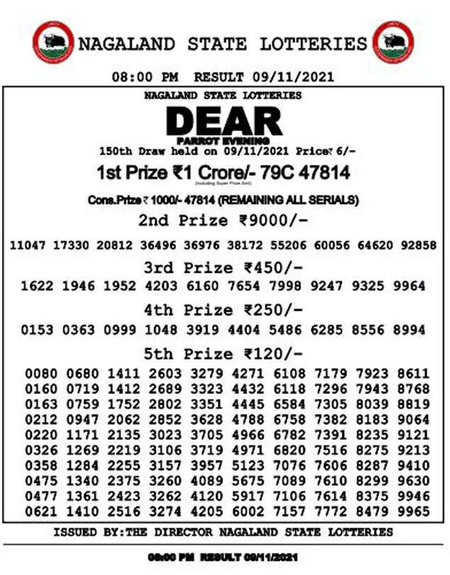 The lottery results will be declared at 8pm. You can check the Nagaland State Lotteries November 9 results below. Result of the November 10 draw once declared will be available on its official website.