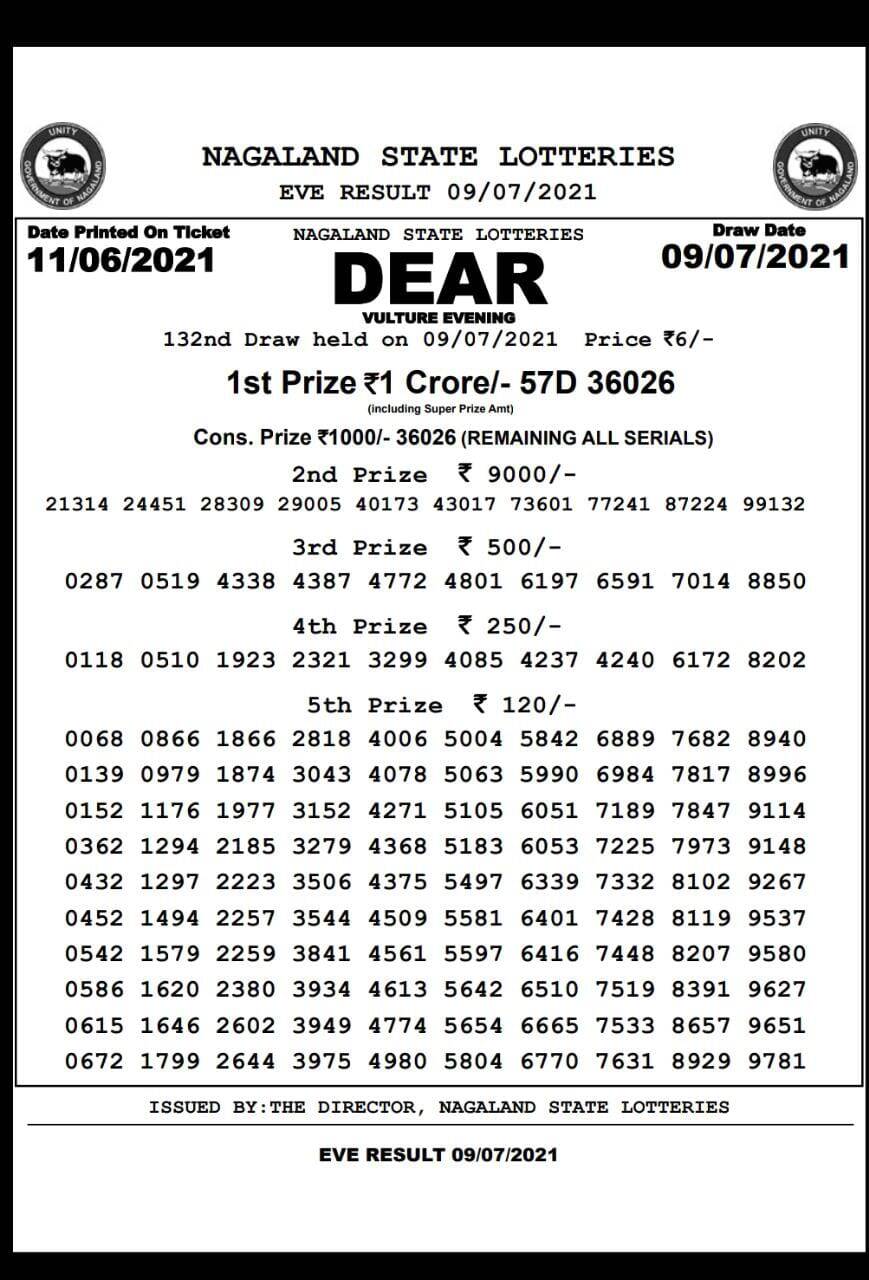 Nagaland Lotteries results: Dear Vulture Evening results are below