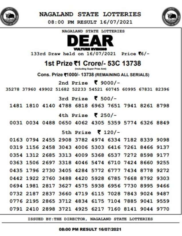 The lottery results will be declared at 8pm. You can check the Nagaland State Lotteries July 16 results below. Result of the July 17 draw once declared will be available on official website.