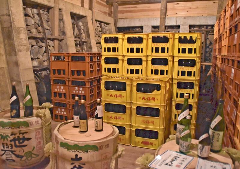 Walking six to seven minutes from the main building leads to a place where the air suddenly felt chilly. The thermometer indicated 8 C in the storehouse, where many local sake products from Matsumoto that need to mature at a low temperature were stored, showing the wisdom of ancestors is still alive and well.