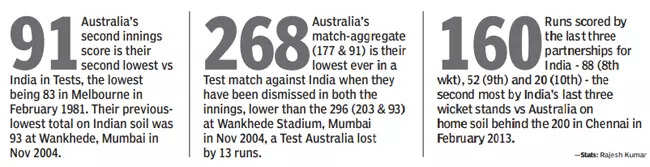 Spin duo of Ravichandran Ashwin and Ravindra Jadeja bamboozled Australia on a typical red-soil wicket as the visitors crumbled to their lowest total in India -- 91 -- to suffer an innings defeat inside three days in Nagpur on Saturday.
