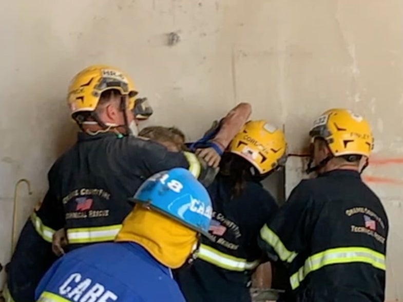 “After a cautious and technical operation, firefighters have gotten the victim out,” the OCFA tweeted.