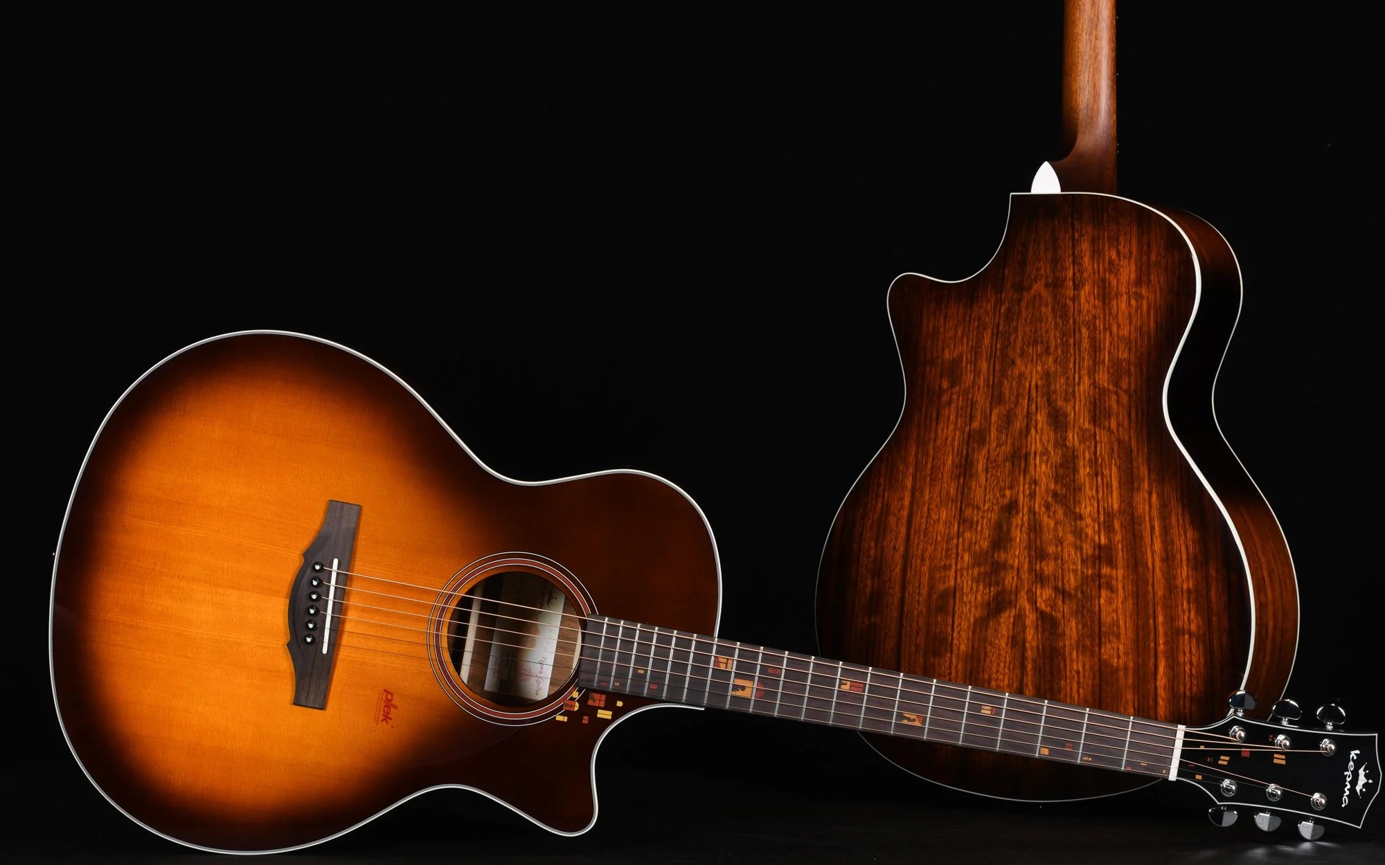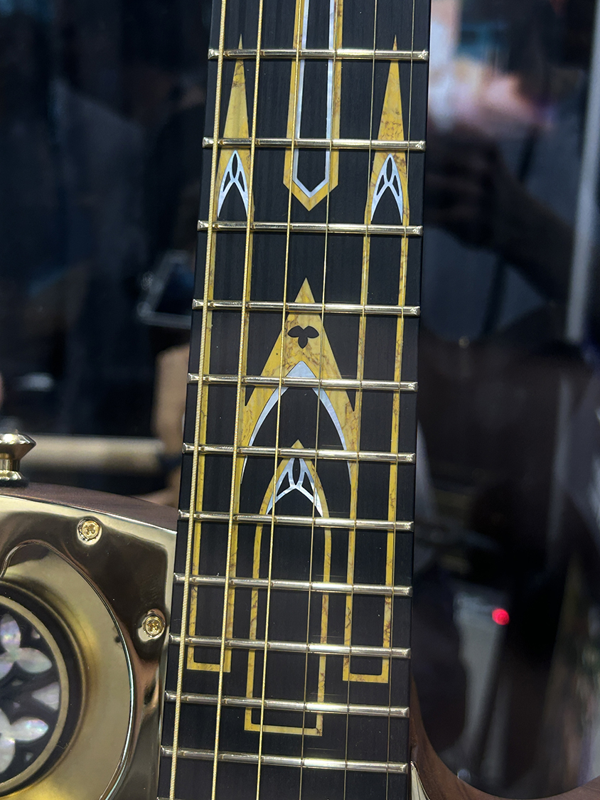 Kepma's Elite Grand Auditorium F2S Lamplight acoustic stopped me in my tracks because, man, look at those inlays! The Nashville-based brand says that the fretboard is meant to represent the floors of a high-rise apartment building, with the inlays being the various lighting scenarios within that high-rise. Bringing cyberpunk to an otherwise classically-styled acoustic – you gotta love that.