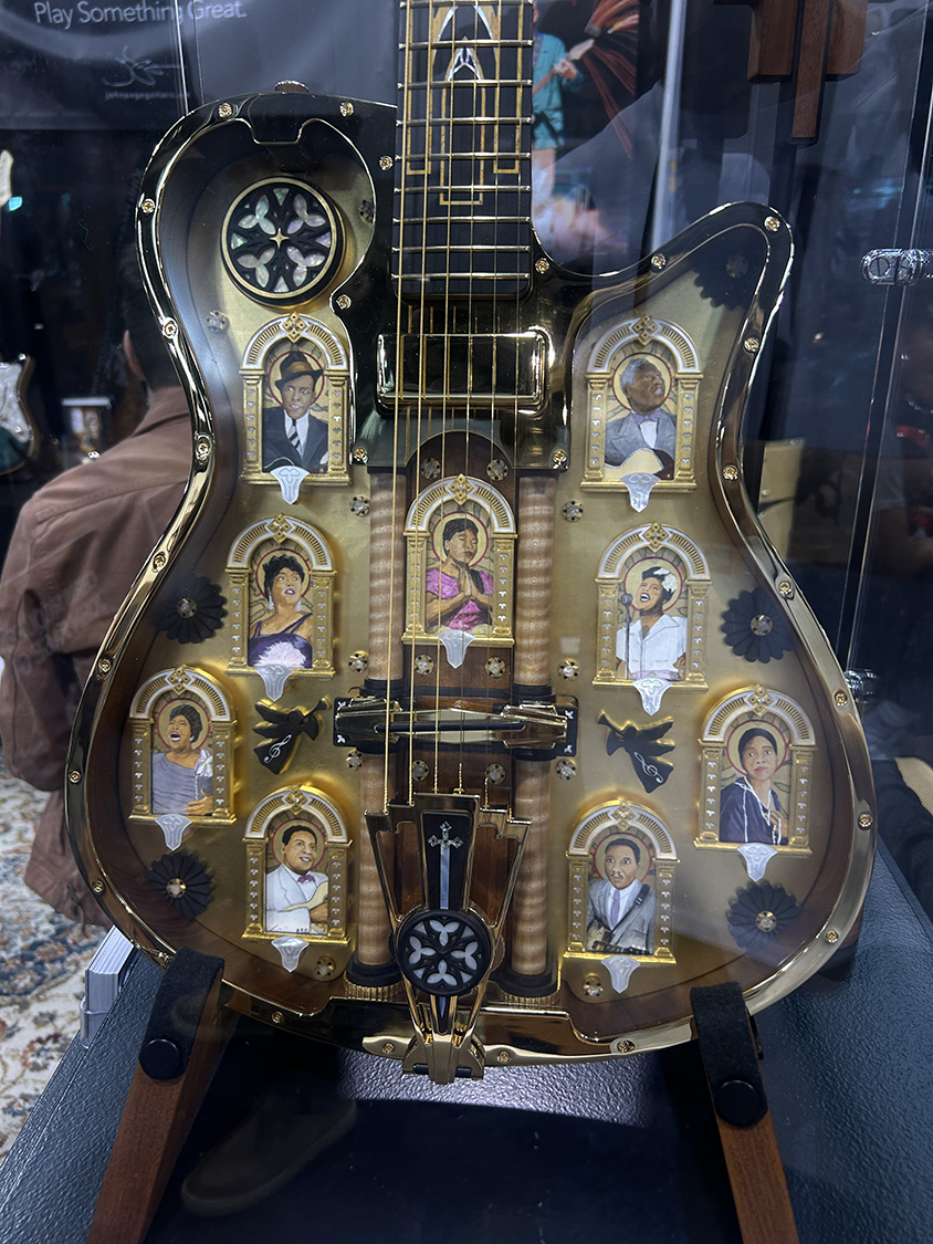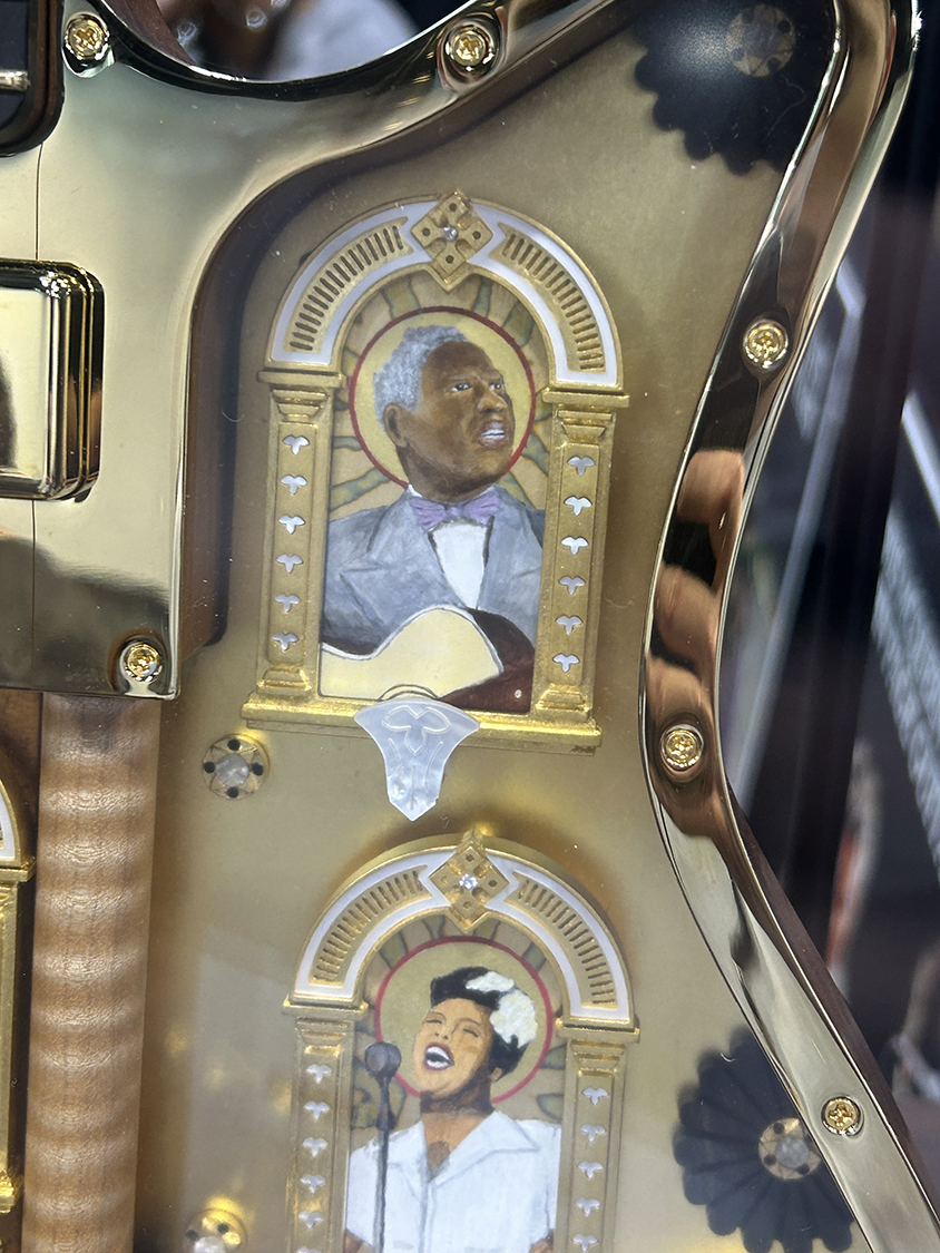 First up is Fatoumata Diawara’s signature Epiphone SG, and if you haven’t heard of Diawara, go to your favorite listening platform right now and prep yourself for a delectable sonic feast.