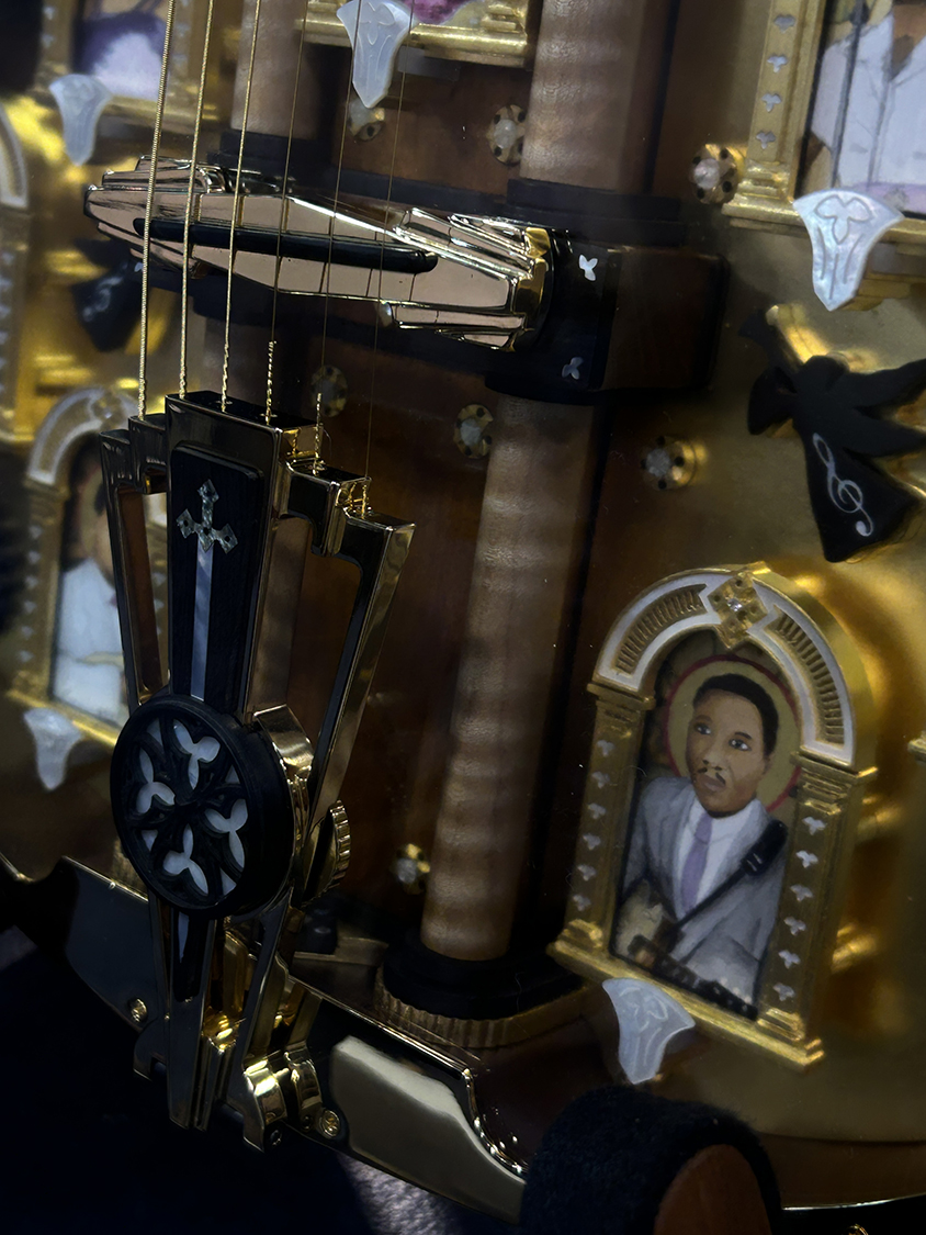 Each spec and detail is Diawara through and through – from the obvious, like the body graphic inspired by Diawara’s Malian roots, to the nods to one of the artist’s favorite SGs, the Epiphone Muse.