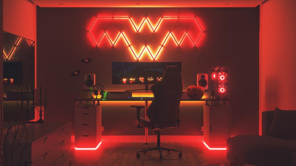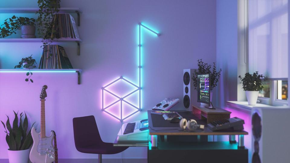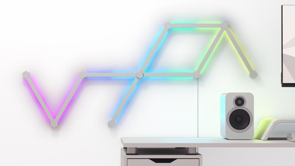 Nanoleaf Lines install simply, sticking on your wall, then clicking together in a pattern of your choosing—though they're all the same length, so if you want to make letters or logos, you'll need to get creative.