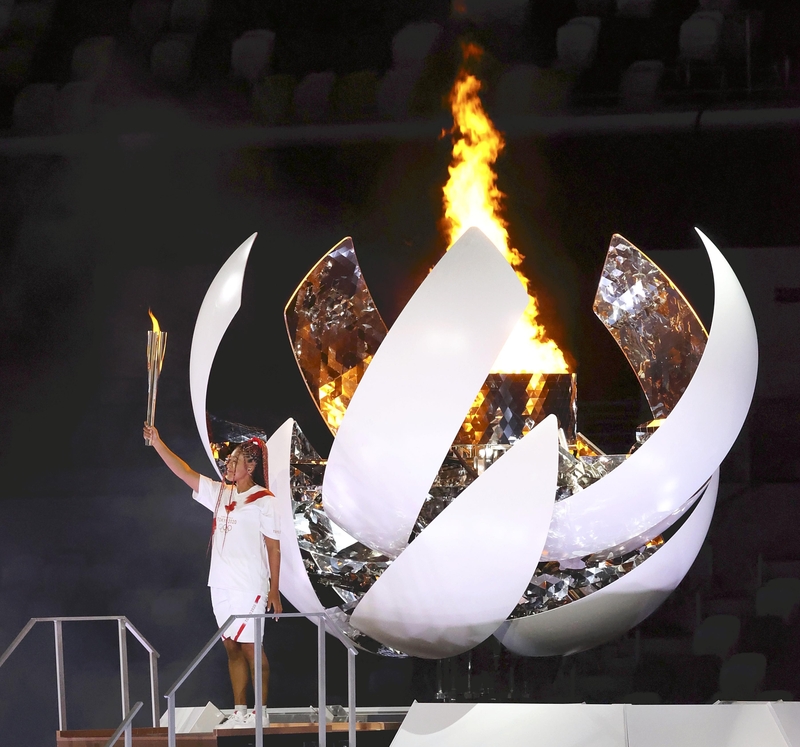 Tennis superstar Naomi Osaka lit the Olympic cauldron as the final carrier of the torch at the opening ceremony of the Tokyo Games on Friday night.