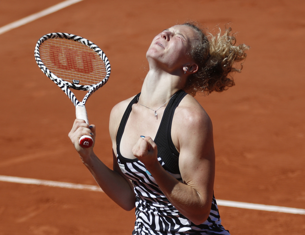 Tennis - French Open - Roland Garros, Paris, France - June 1, 2019. Katerina Siniakova of the Czech Republic celebrates winning her third round match against Japan's Naomi Osaka. REUTERS/Vincent Kessler