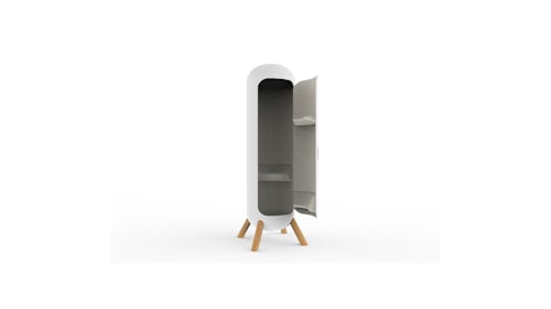 A tasteful fusion of Itoki’s furniture expertise and lumber sourced by Koyoju Gohan, the nap box looks a bit like a coffin, or if you’re feeling generous, a pill. The vertical box is designed to make sure a worker’s “head, knees, and rear are all comfortably supported” while napping, and to keep them from falling over while sleeping standing up, which as you might expect, isn’t the most natural position to rest.