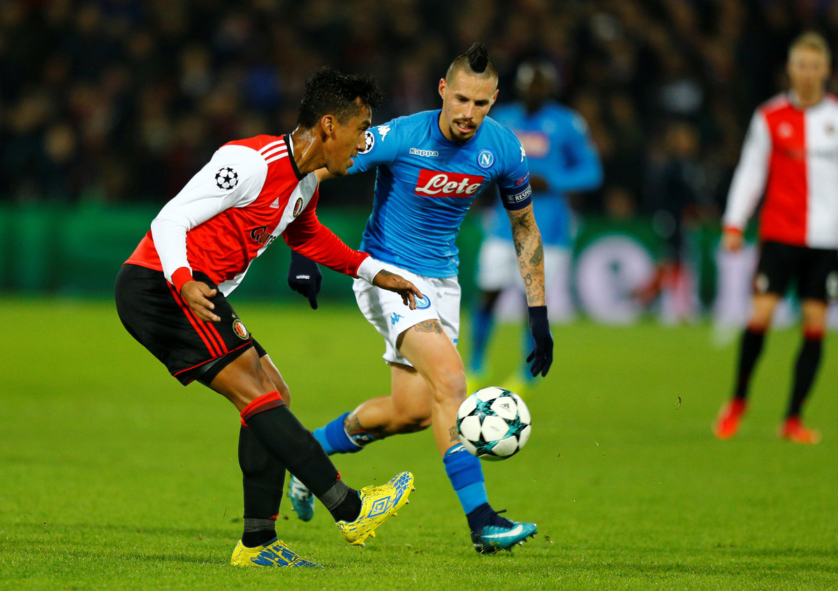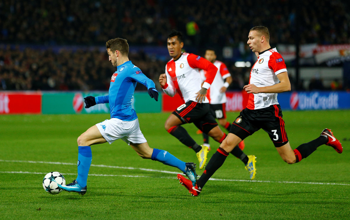 Dries Mertens and Marek Hamsik both had chances to increase Napoli's lead before Feyenoord levelled on 33 minutes as Steven Berghuis's cross was headed into the net by Jorgensen.