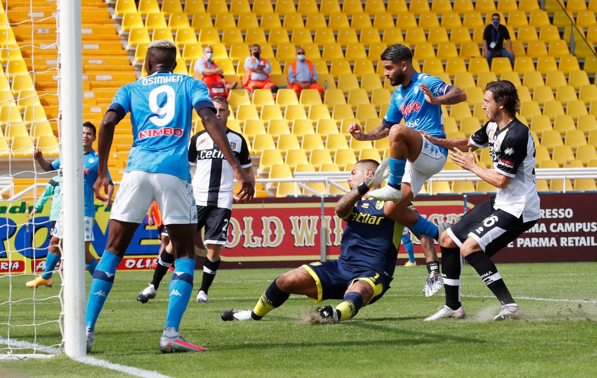 Insigne struck the post from Osimhen's flick before Parma gifted Napoli a second goal. Lozano intercepted a pass out of the Parma defence, his shot was saved by Sepe but Insigne snapped up the rebound in the 77th minute.