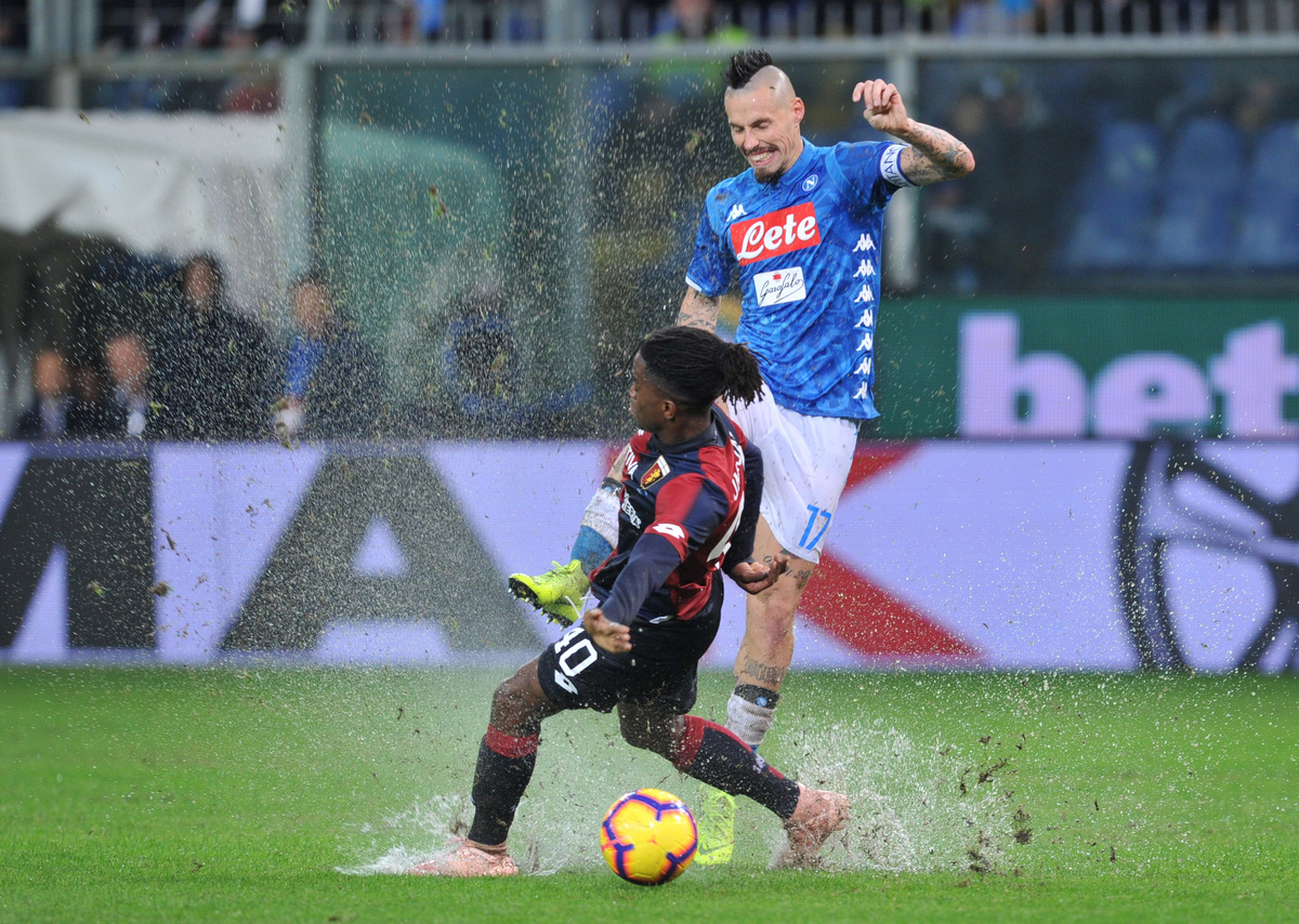 MILAN (Reuters) - Napoli splashed their way to a 2-1 win at Genoa in Serie A on Saturday, defying a pitch made almost unplayable by a torrential downpour early in the second half.