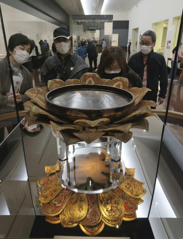 "The lacquered pedestal has a dynamic design evoking an image of a flame. It looks novel even now in the Reiwa era," a 62-year-old visitor of Tenri, Nara Prefecture. "Viewing these treasures with my own eyes has given me energy."